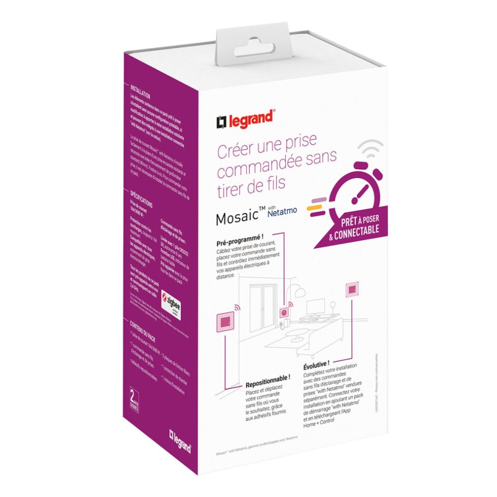 Set de prize pre-asociate Legrand Program Mosaic, compus din 1 priză inteligentă și 1 comutator cu telecomandă simplă - 077734L