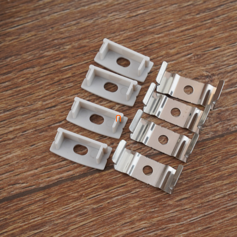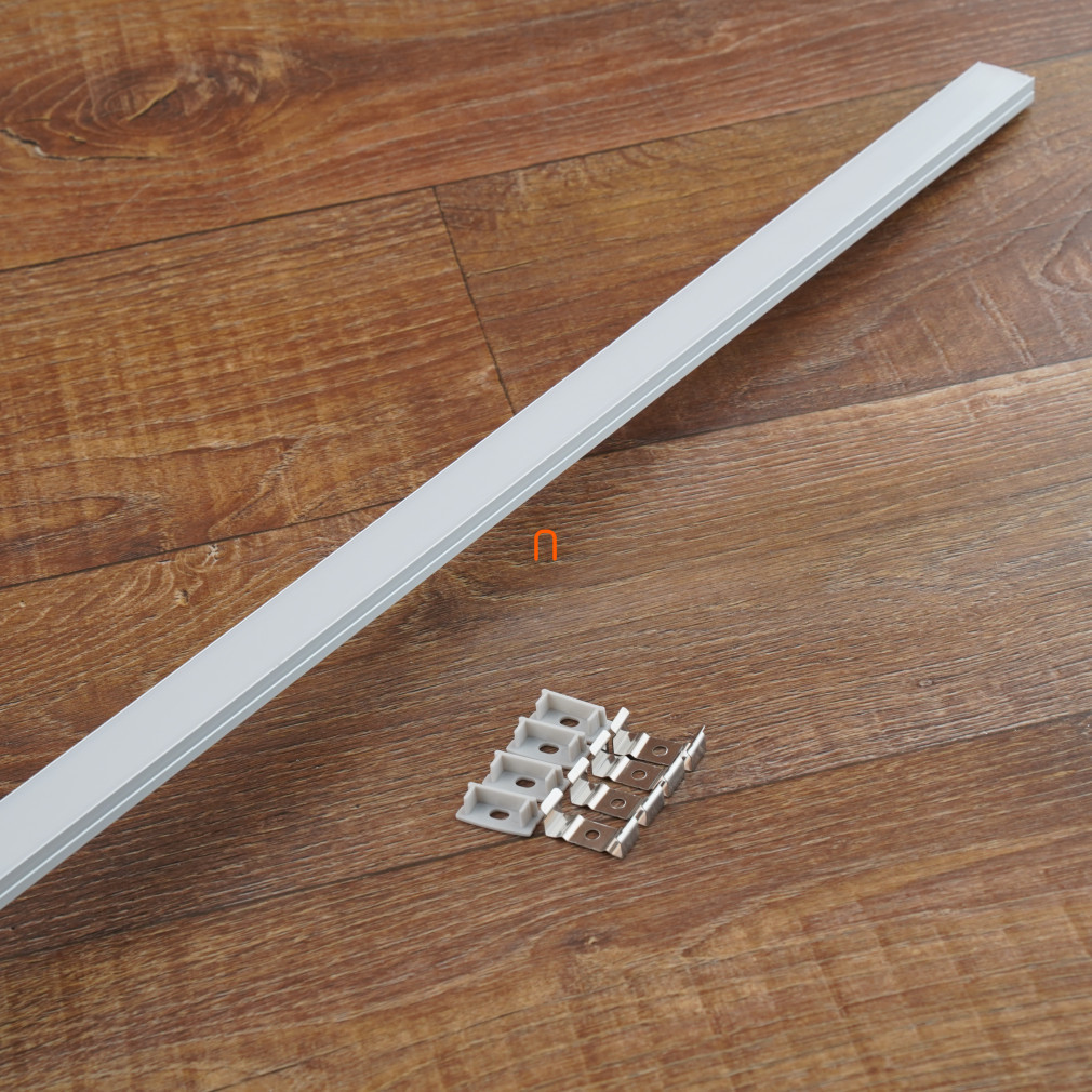 Set de șine din aluminiu pentru bandă LED, șină laterală pentru bandă de 20 mm, 2 m + capac opal + 4 elemente de fixare + 2 capace de capăt DEL1488