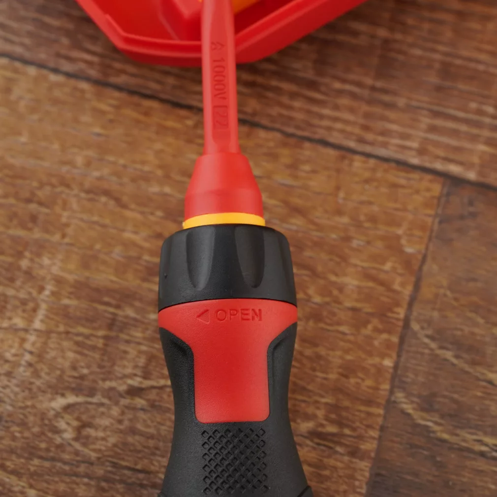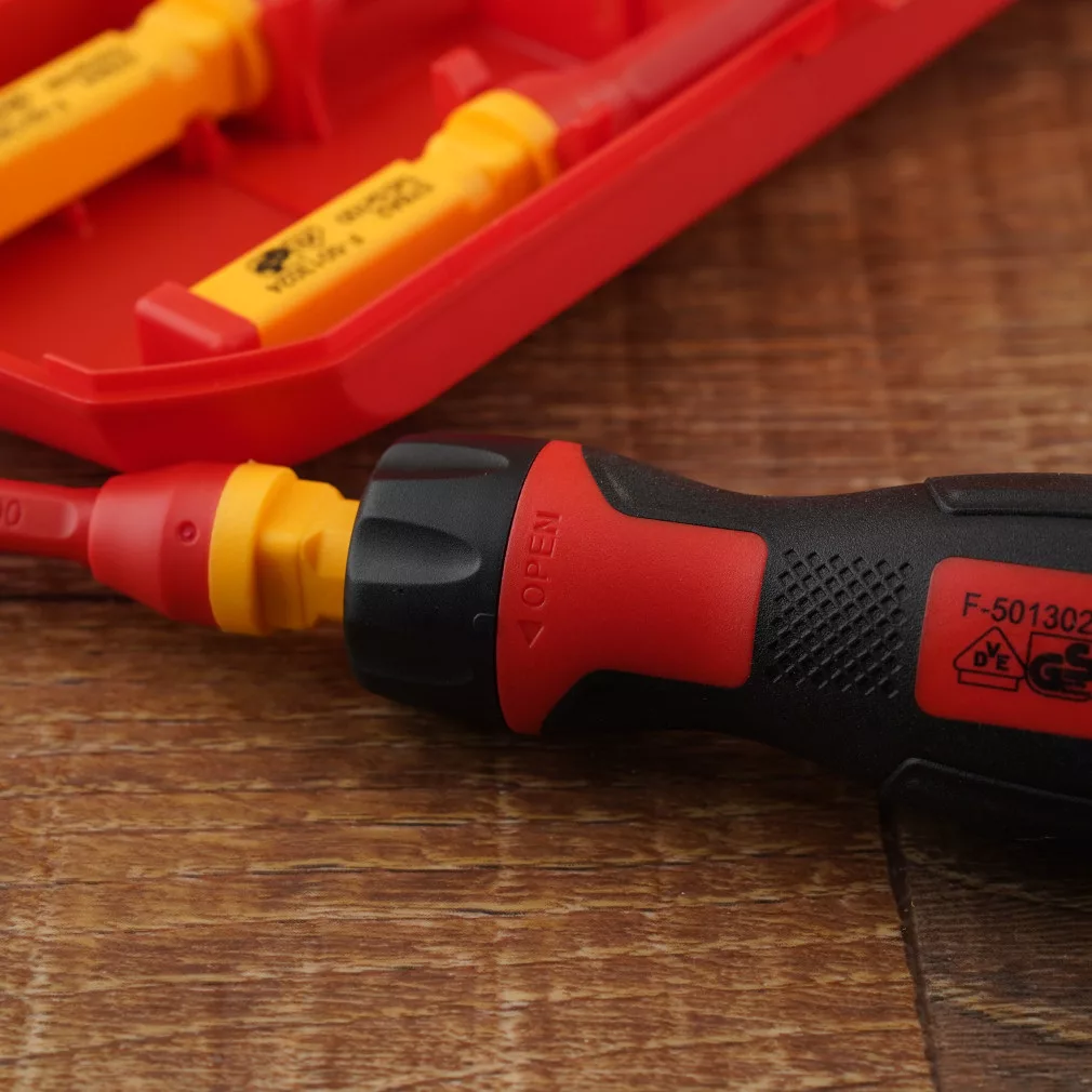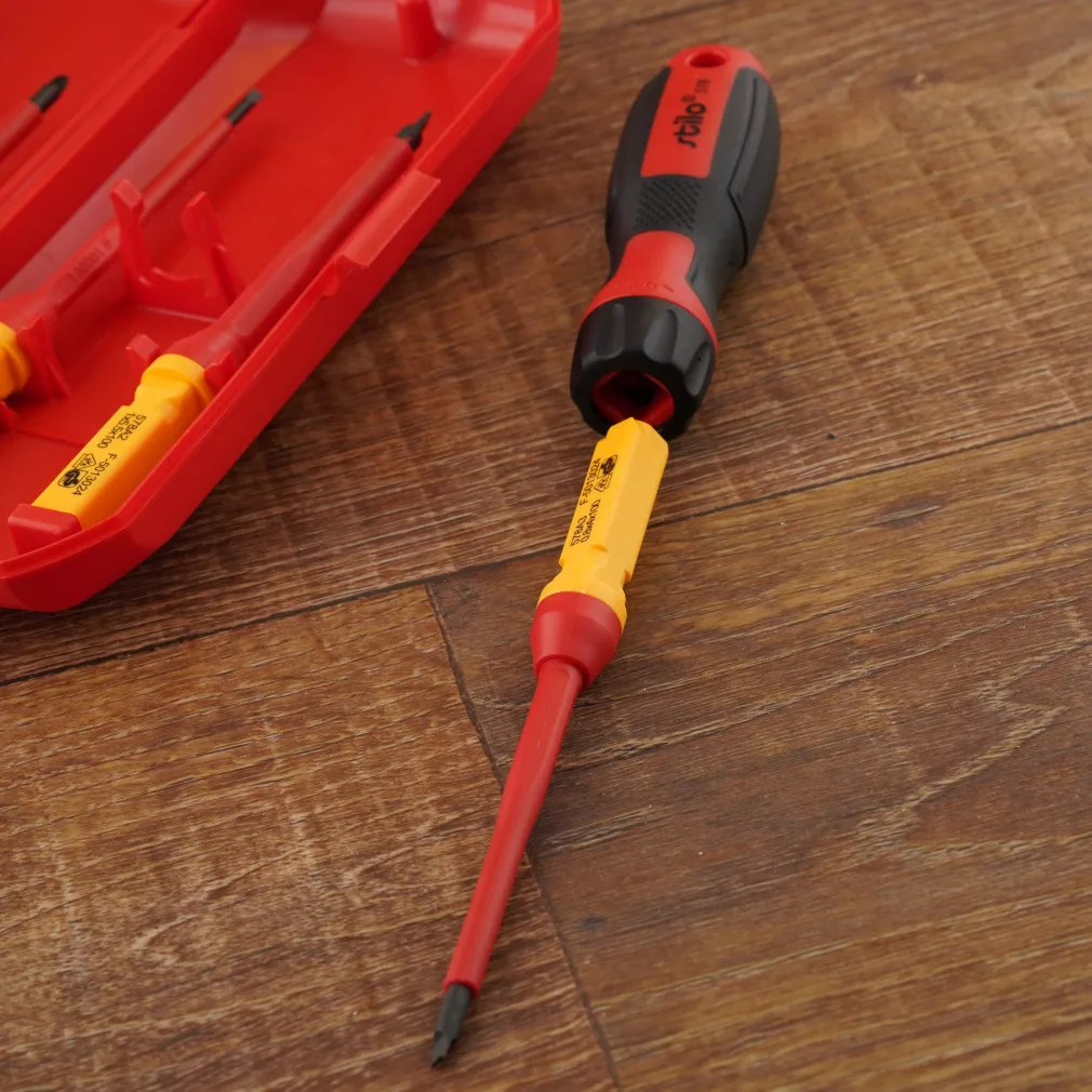 Acest set de șurubelnițe este alegerea ideală pentru toți electricienii și pasionații de bricolaj care doresc siguranță și fiabilitate. Uneltele sunt izolate până la 1000 V și certificate VDE, garantând protecție maximă în timpul lucrărilor electrice. Acest set nu numai că pune accentul pe siguranță, ci și pe ușurința utilizării. Diferitele capete vă permit să efectuați cu ușurință majoritatea sarcinilor de înșurubare, fie cu capete plate, fie cu capete PZ.