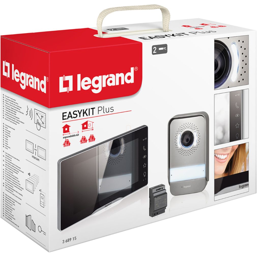 Set interfon video Legrand EASYKIT Plus cu 2 fire: video color, 7 cm, extensibil la 1 apartament, alimentare modulară DIN, efect oglindă 368915