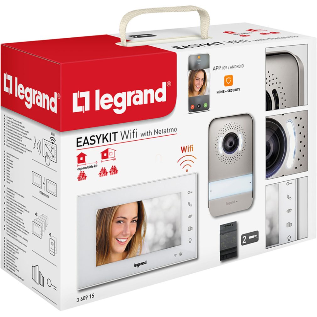 Set interfon video Legrand EASYKIT Wi-Fi cu 2 fire: video color, 7 culori, extensibil la 1 apartament, sursă de alimentare modulară DIN, alb 360915