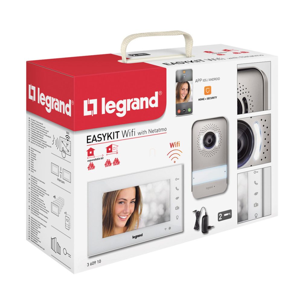 Set interfon video Wi-Fi Legrand EasyKit cu 2 fire: pentru un singur apartament, extensibil, video color (7''), cu adaptor, alb - 360910