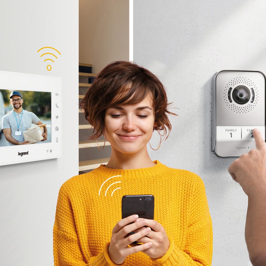Set interfon video Legrand EASYKIT Wi-Fi cu 2 fire: pentru un singur apartament, extensibil, video color, 7 culori, cu adaptor, alb 360910