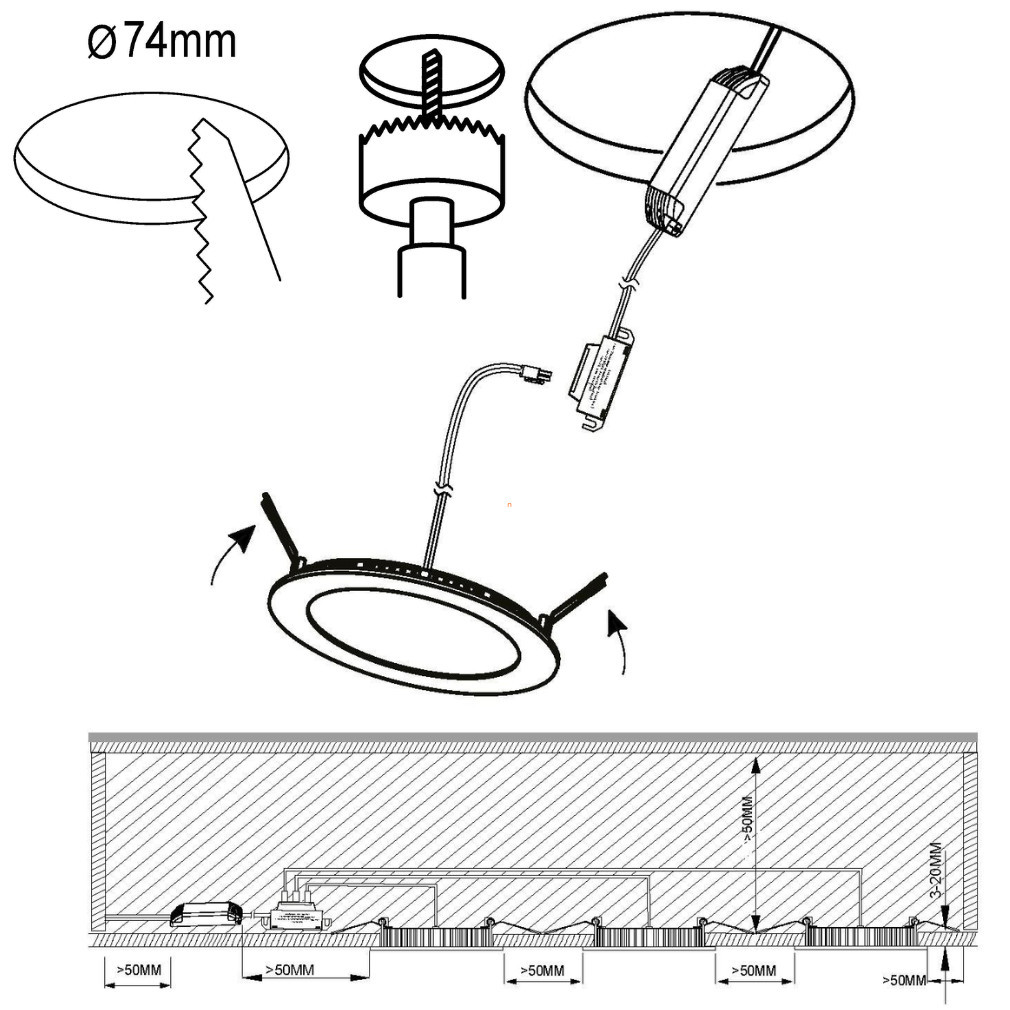 Execuție: poate fi încastrat în tavane suspendate