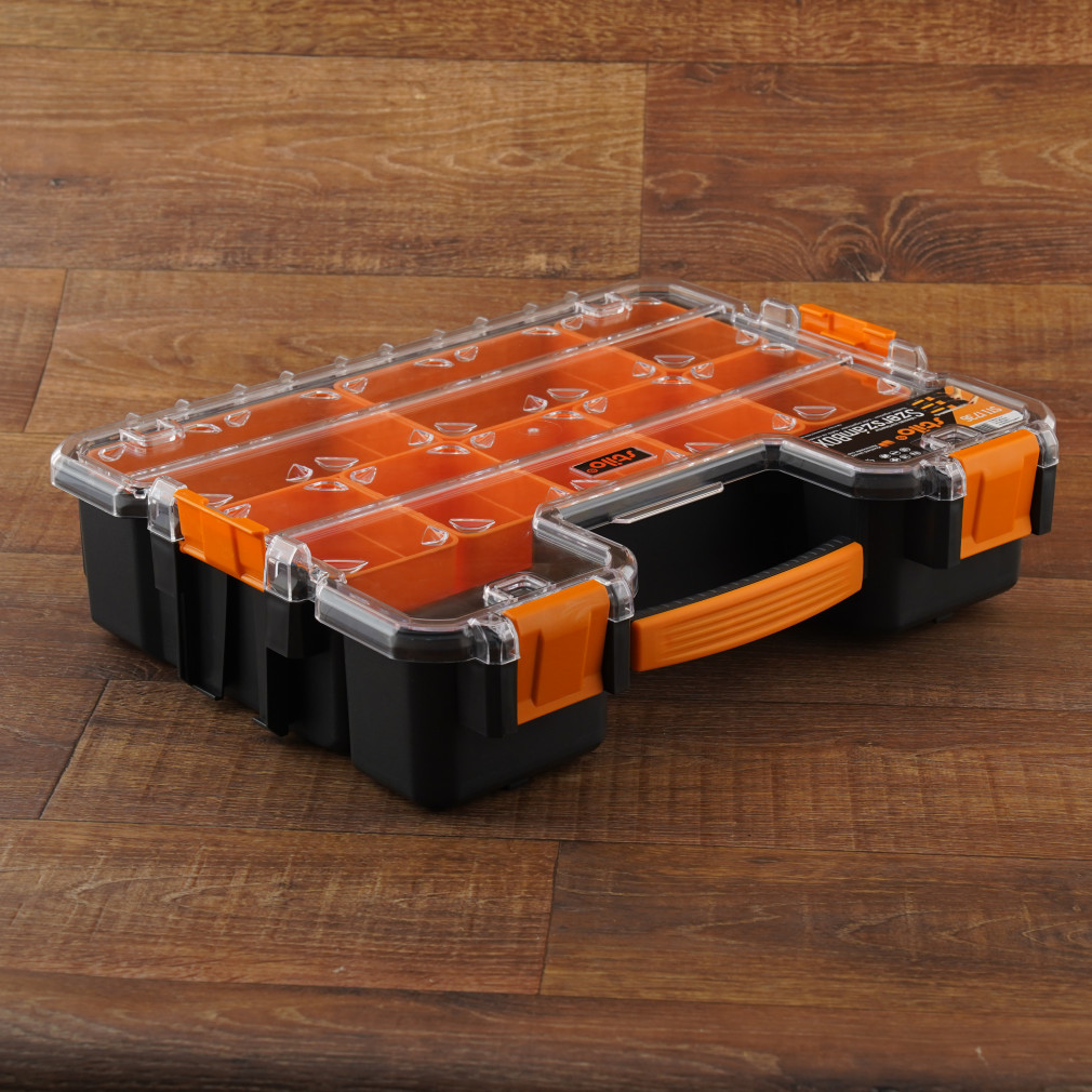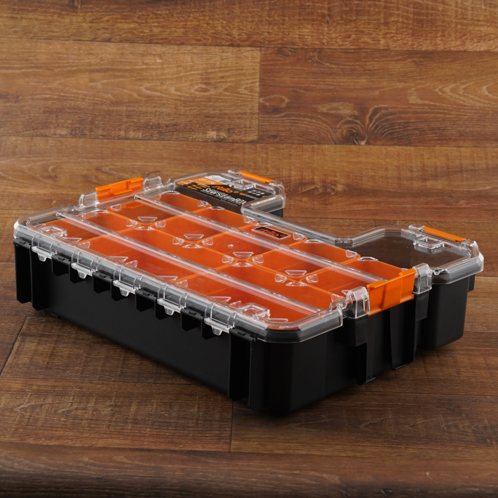 Cutiile noastre de scule STI1736 și STI1737 pot fi stivuite una peste alta și fixate cu un dispozitiv de închidere. Această soluție permite stivuirea mai multor cutii de scule una peste alta, economisind spațiu în timpul transportului sau depozitării.