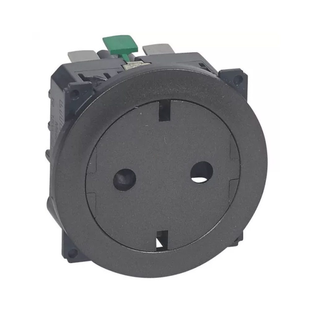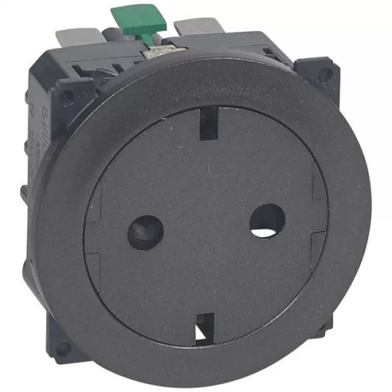 Leg. 067168 Céliane 2P+F csatlakozóaljzat, falsíkba illeszkedő grafit betéttárcsával, (GYV) biztonsági zsalus, rugós bekötéssel