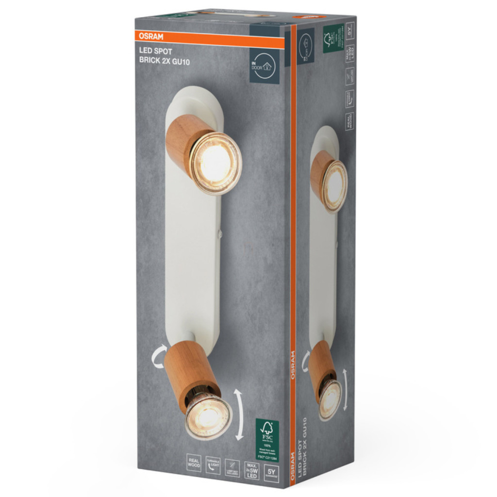 Osram LED Spot Brick – Mennyezeti lámpa 2xGU10 foglalattal, fehér-fa dekorral, állítható spotfejekkel, praktikus belső világításhoz