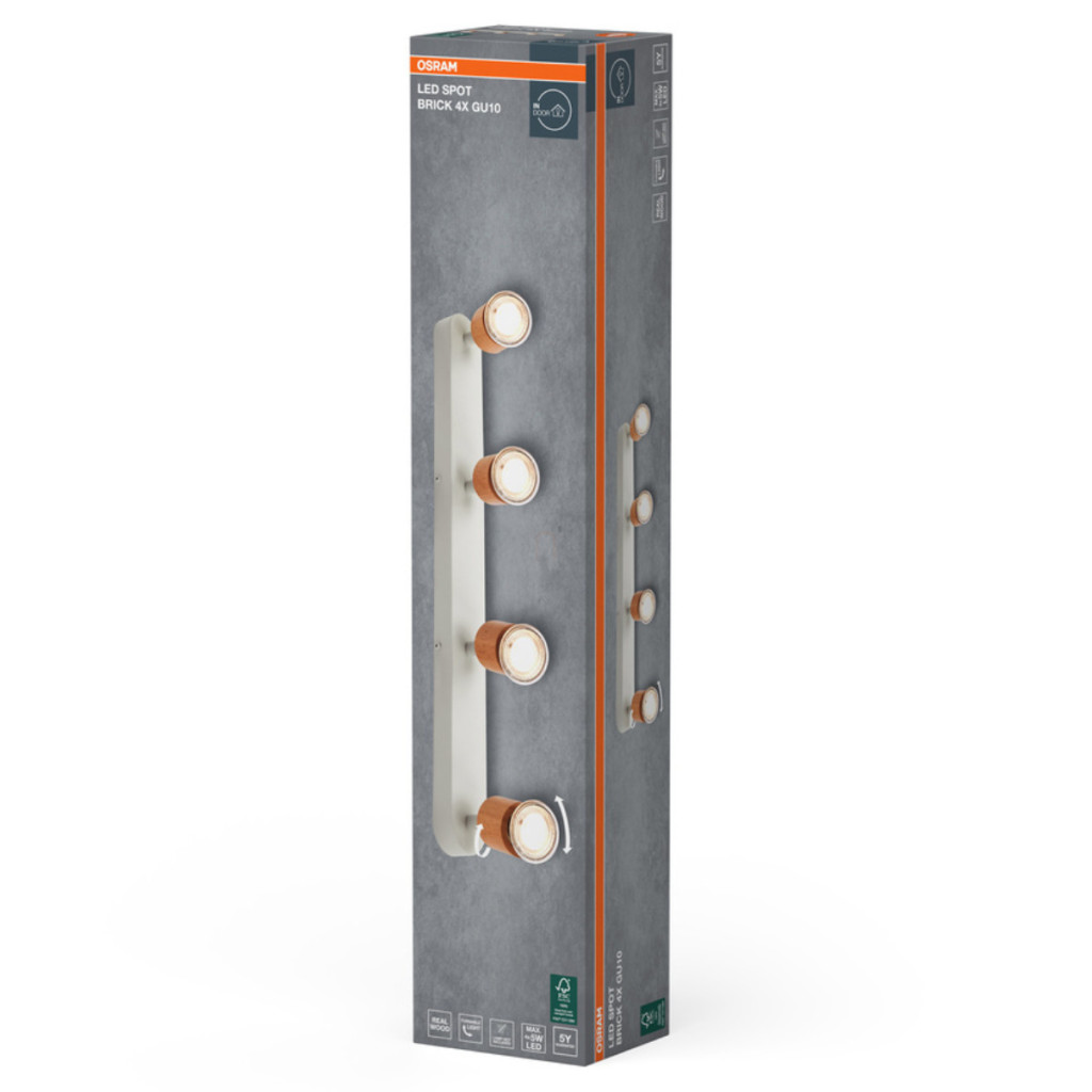 Osram LED Spot Brick 4xGU10 - Mennyezeti lámpa fehér és fa dekorációval, 4 állítható spotfejjel, GU10 foglalattal, max. 5W
