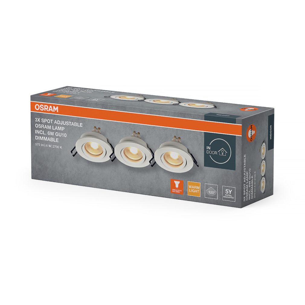 Osram Spot Set Recess süllyesztett spot lámpa szabályozható GU10 LED fényforrással, billenthető, fehér - 3 darabos