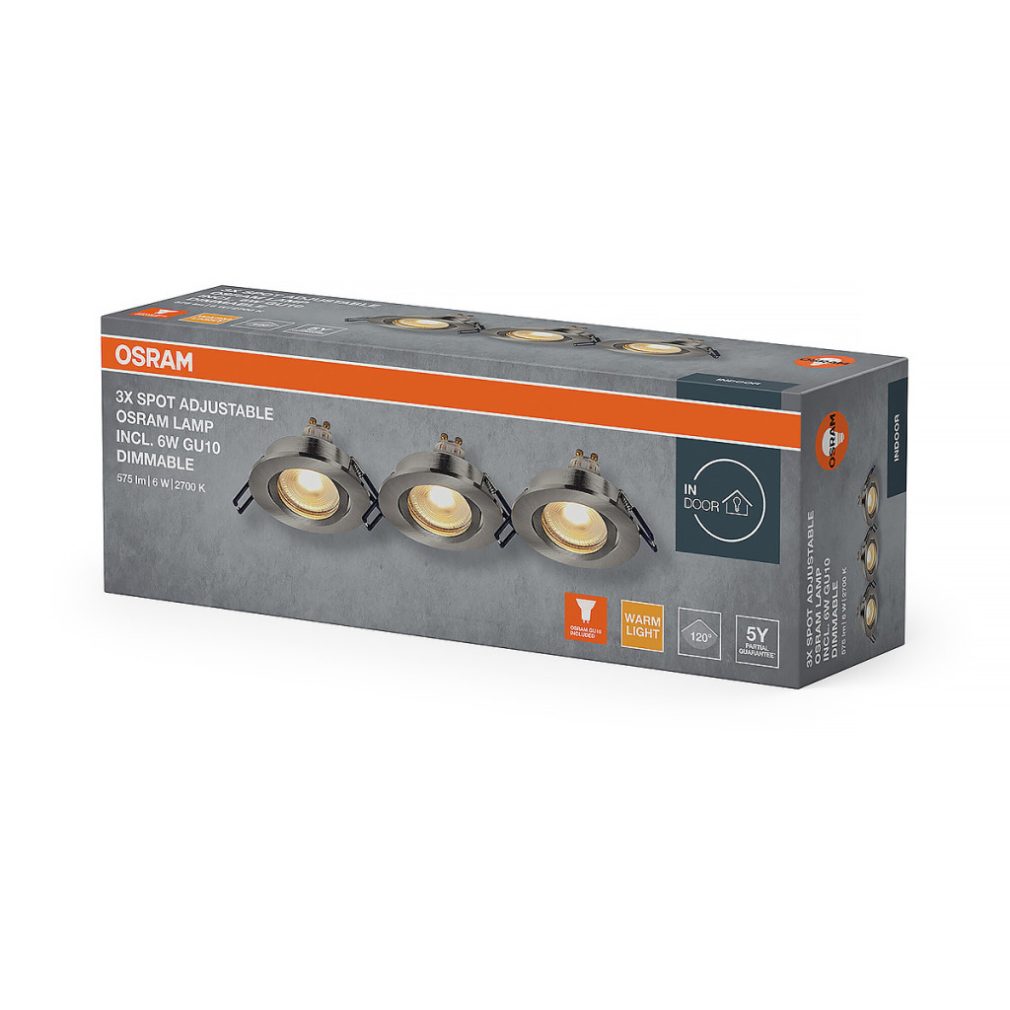Osram Spot Set Recess süllyesztett spot lámpa szabályozható GU10 LED fényforrással, billenthető, nikkel - 3 darabos