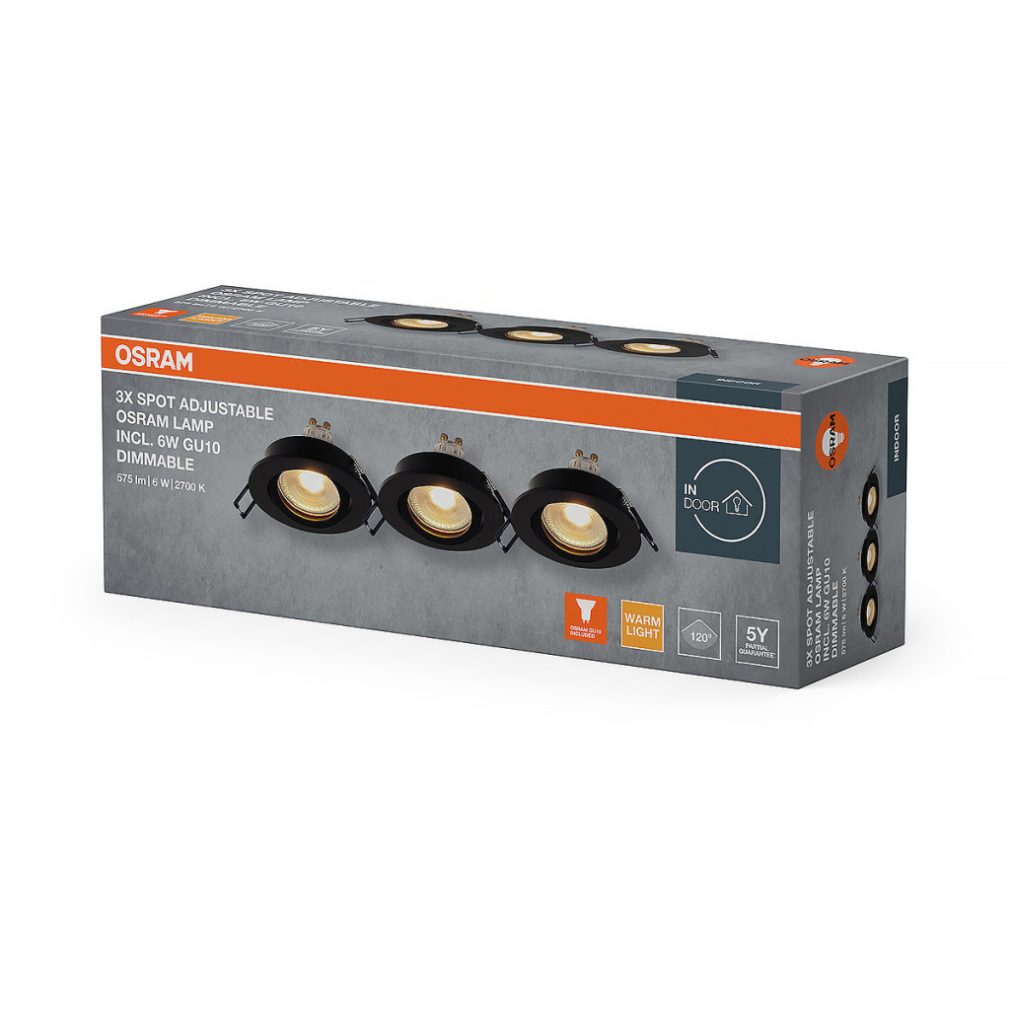 Osram Spot Set Recess süllyesztett spot lámpa szabályozható GU10 LED fényforrással, billenthető, fekete - 3 darabos