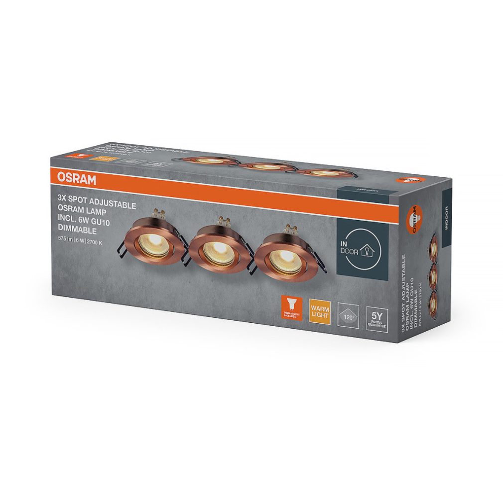 Osram Spot Set Recess süllyesztett spot lámpa szabályozható GU10 LED fényforrással, billenthető, vörösréz - 3 darabos