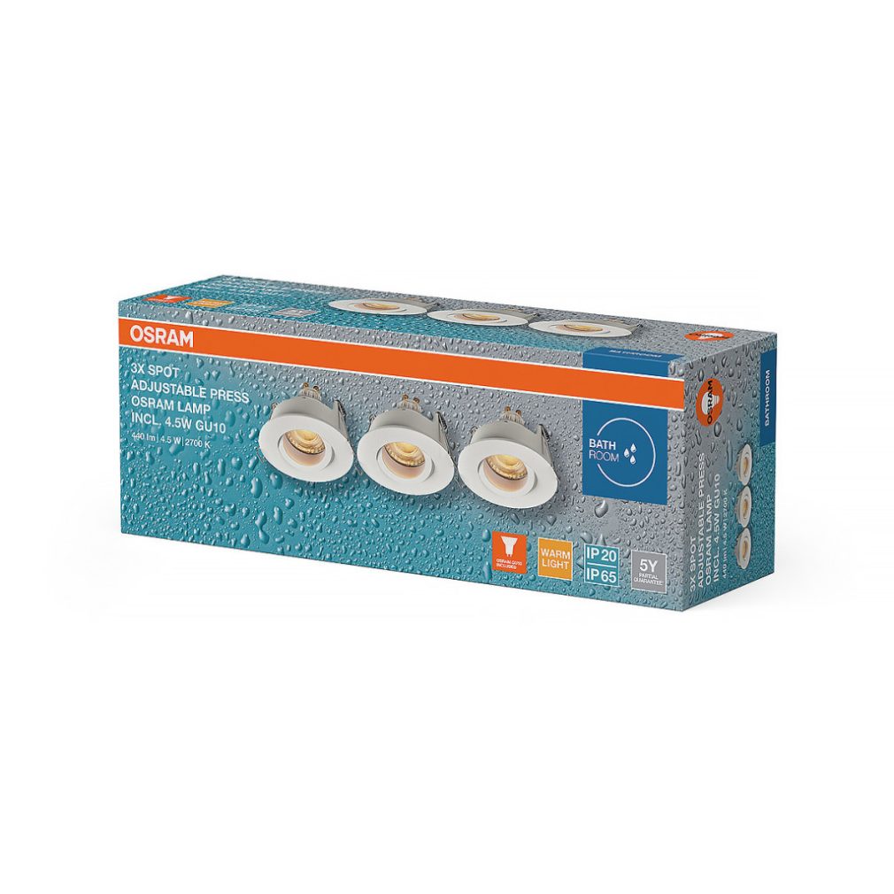 Osram Spot Set Recess süllyesztett spot lámpa GU10 LED fényforrással, billenthető, fehér - 3 darabos