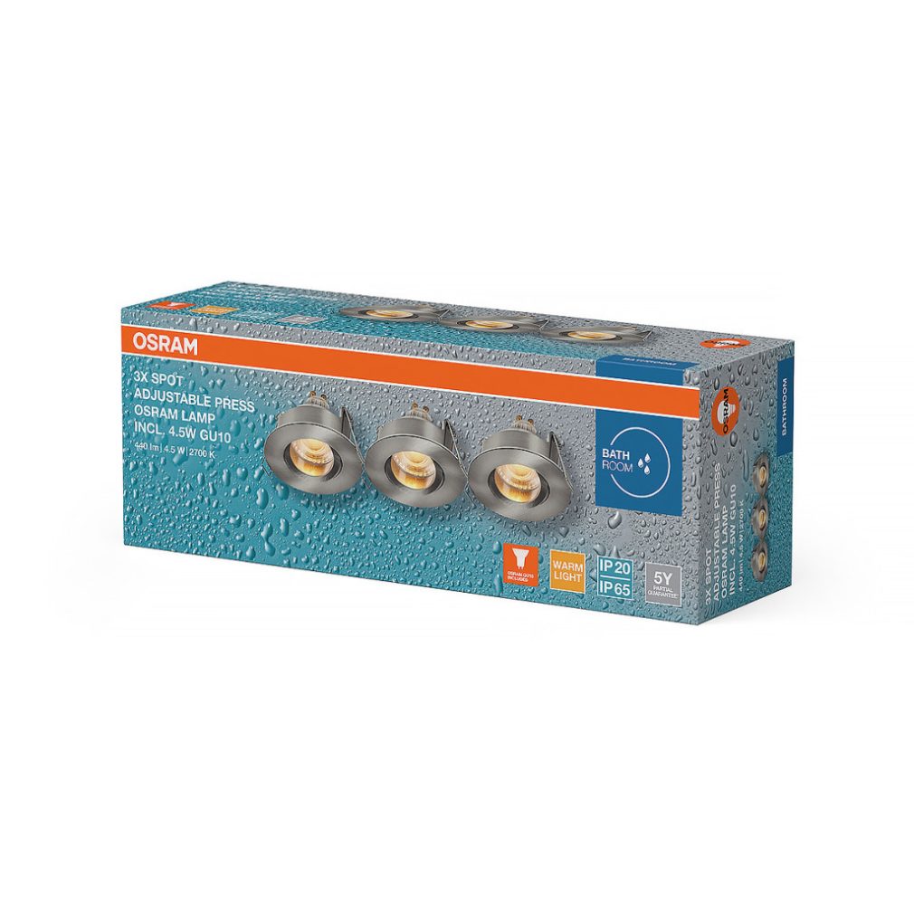 Osram Spot Set Recess süllyesztett spot lámpa GU10 LED fényforrással, billenthető, nikkel - 3 darabos