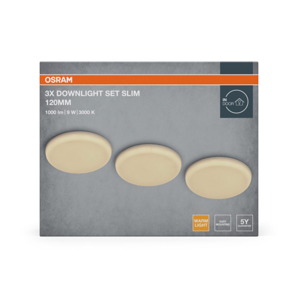 3 darabos Osram LED Downlight Adjustable Cut Out Slim 120mm 9W 830 White - Állítható kivágású süllyesztett mennyezeti lámpa, 810lm, 3000K melegfehér fény, 120° sugárzási szög