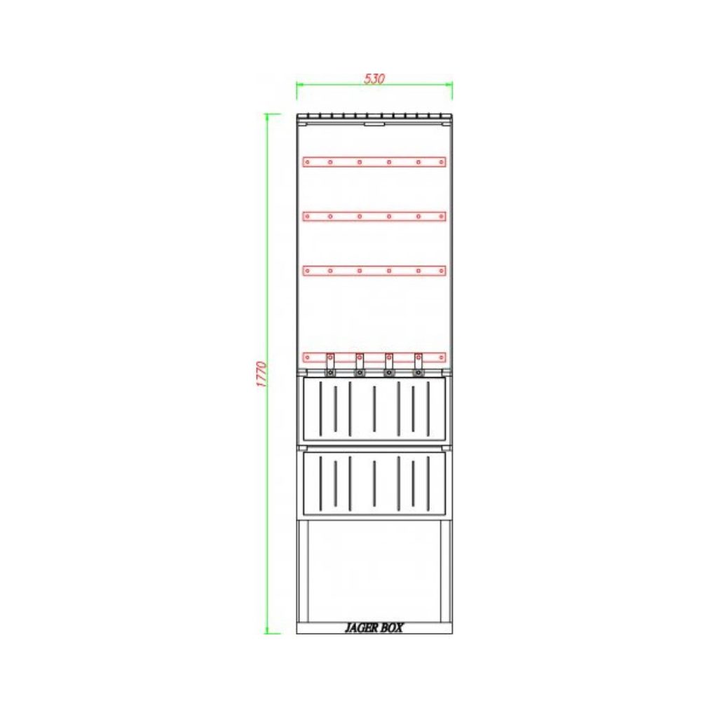 PVT-K-L 53 FE szakaszoló nélkül 530x880x250mm, max 4 biztosítósor 630A-ig
