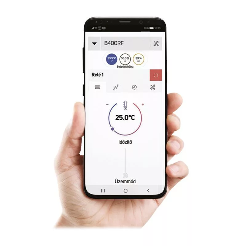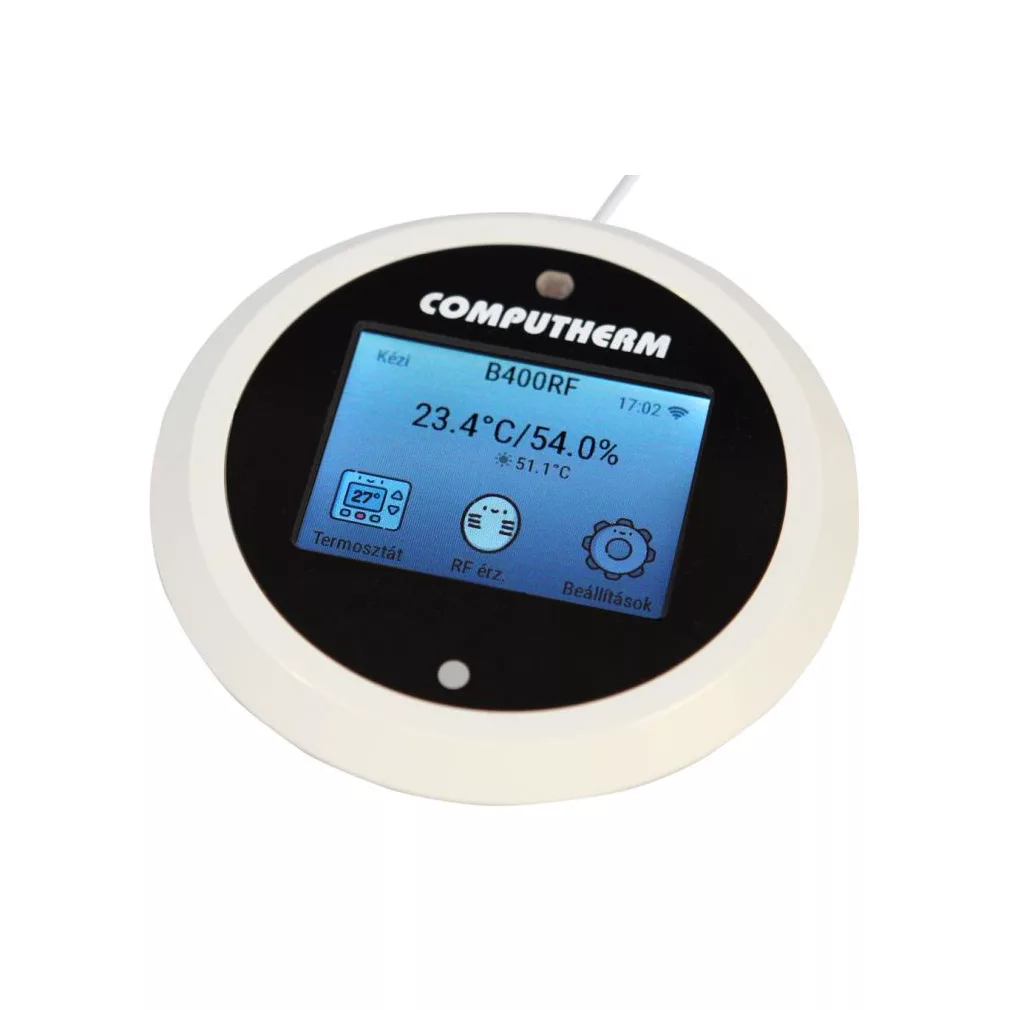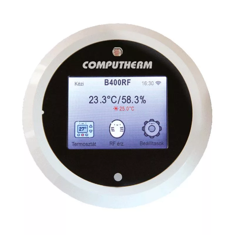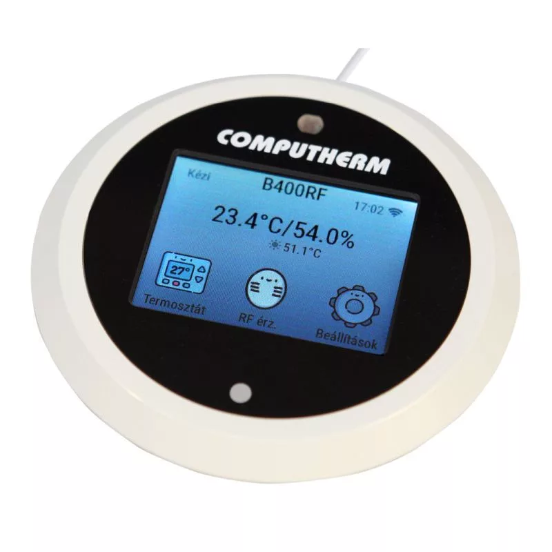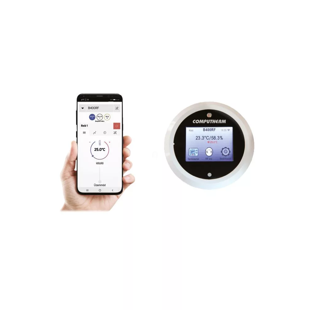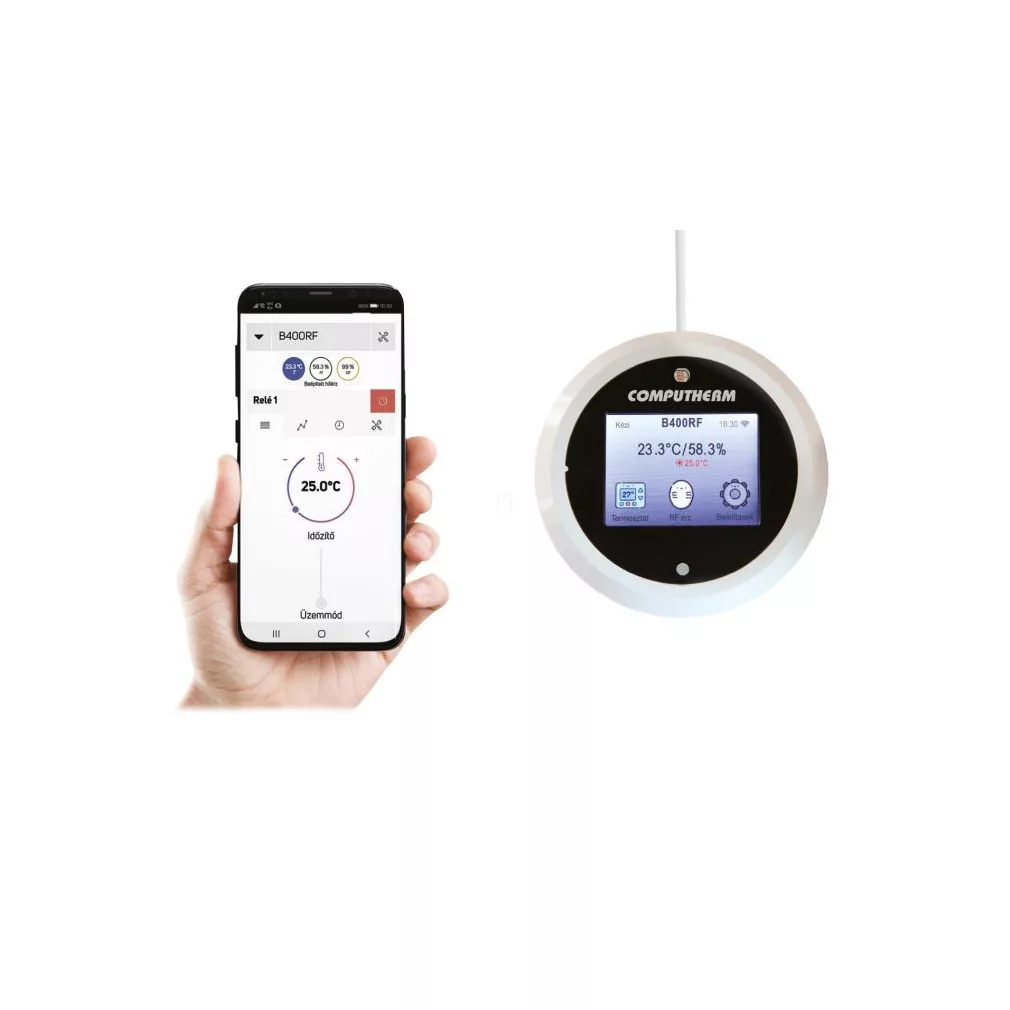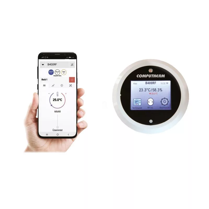 A COMPUTHERM B400RF típusú Wi-Fi termosztát egy interneten keresztül okostelefonról, tabletről és számítógépről is vezérelhető, vezeték nélküli kapcsolóüzemű készülék, melyet elsősorban a központi fűtések és elektromos készülékek vezérlésére ajánlunk. Egyszerűen csatlakoztatható bármely, kétvezetékes szobatermosztát csatlakozási ponttal rendelkező gázkazánhoz, klímaberendezéshez, egyéb elektromos készülékhez függetlenül attól, hogy az 24 V-os vagy 230 V-os vezérlőáramkörrel rendelkezik.