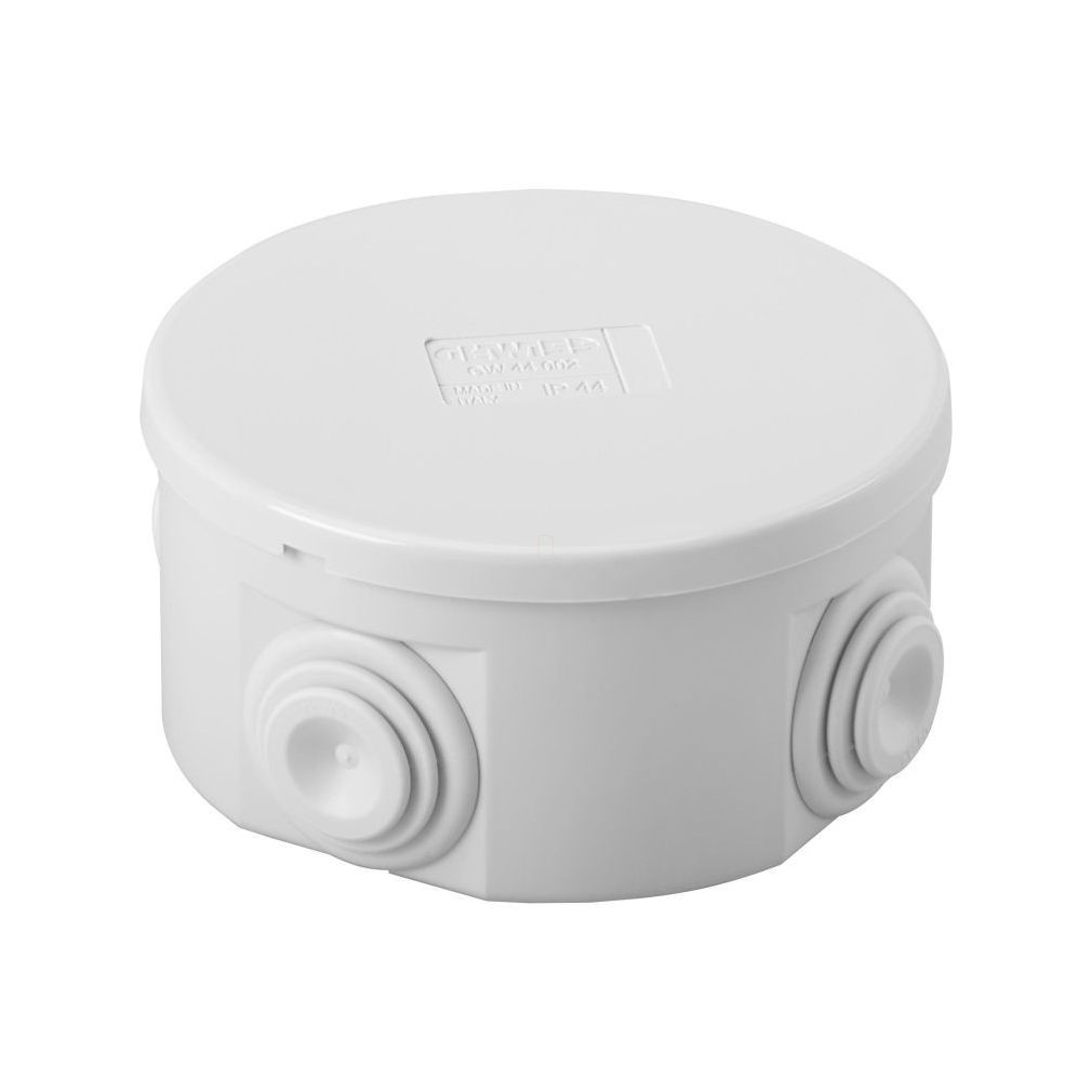 \nIP 44 védelemmel rendelkező szerelvénydobozok IK07 ütésállósággal.\r\nA csatlakozódoboz aljának külső része központi menetes furattal van ellátva. Kábel tömszelencék 4-14 mm átmérőjű vezetékekhez és 16, 20 és 25 mm átmérőjű védőcsövekhez. Bepattintós fedél.