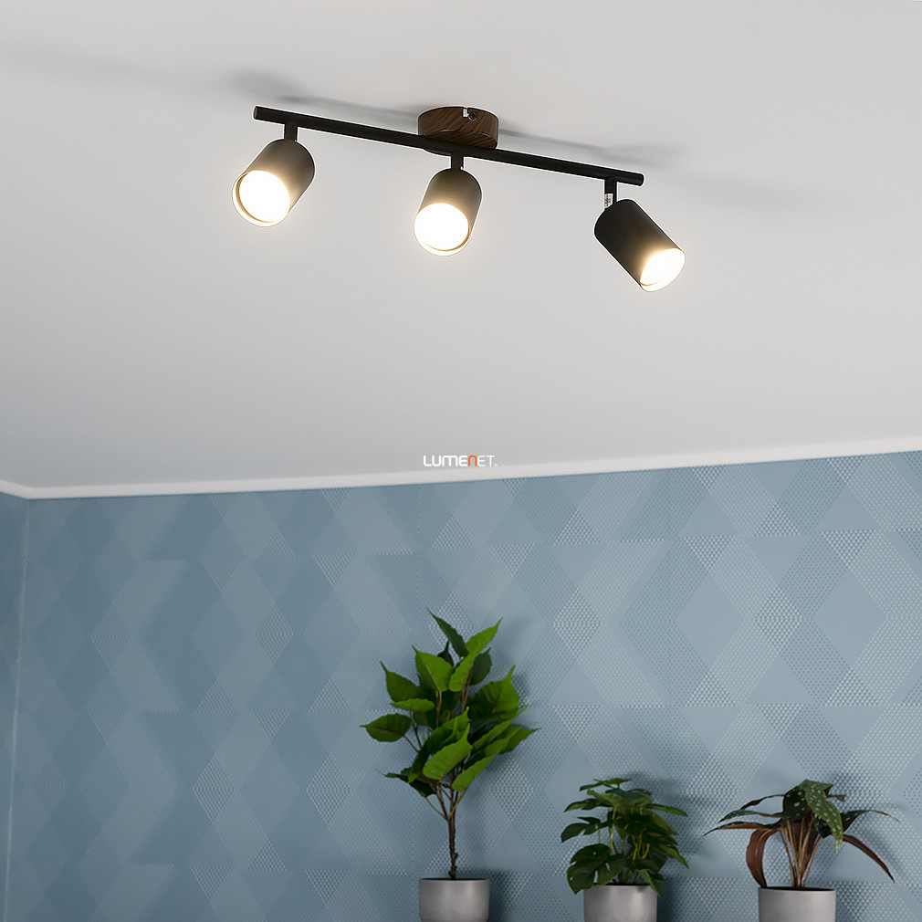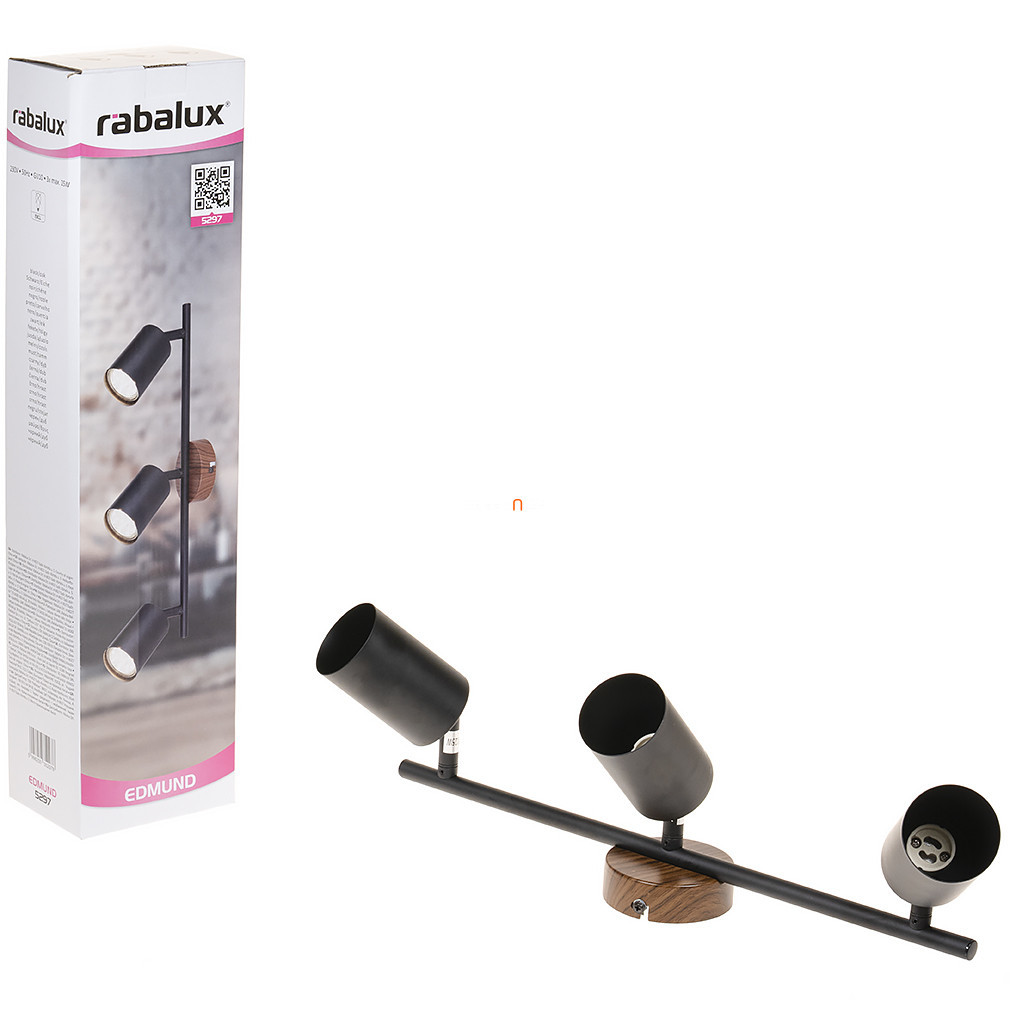 Spotul de tavan Edmund Rábalux 5297 are trei socluri GU10 compatibile cu surse de lumină înlocuibile, permițându-vă să alegeți fluxul luminos, culoarea luminii, puterea și temperatura culorii în funcție de nevoile dvs. Lampa nu este reglabilă și are un design ajustabil, astfel încât direcția luminii poate fi modificată cu ușurință. Lampa în stil vintage este fabricată din metal, cu o combinație de culori lemn și negru, care se potrivește estetic în diverse interioare. Lampa are protecție IP20 și este potrivită pentru utilizare în interior. Dimensiuni: lungime 420 mm, lățime 55 mm, înălțime 155 mm, greutate 0,65 kg. Dimensiunea ambalajului este de 12x9x48 cm, sursele de lumină nu sunt incluse.