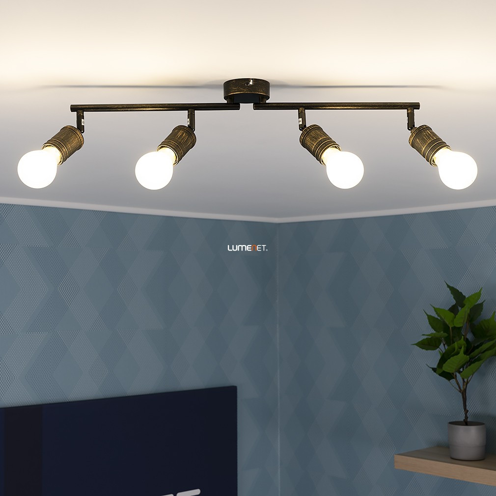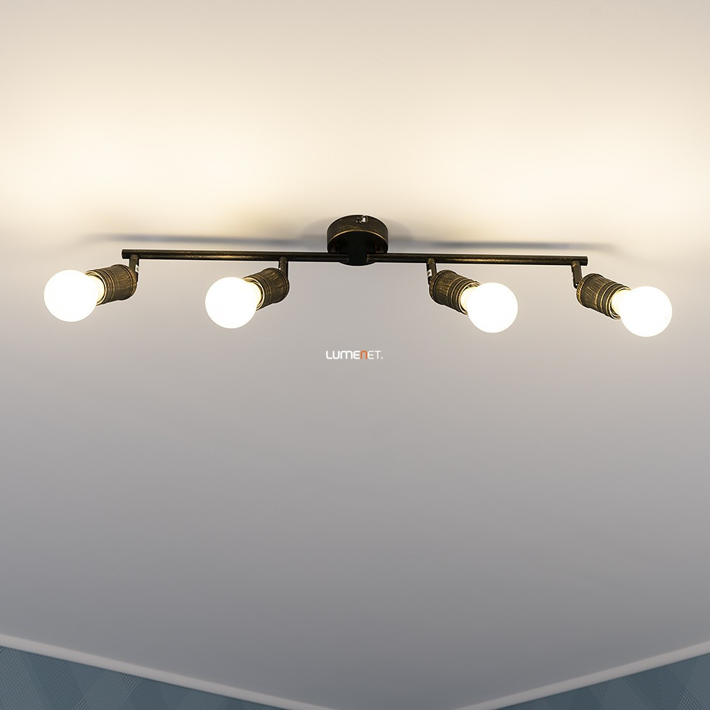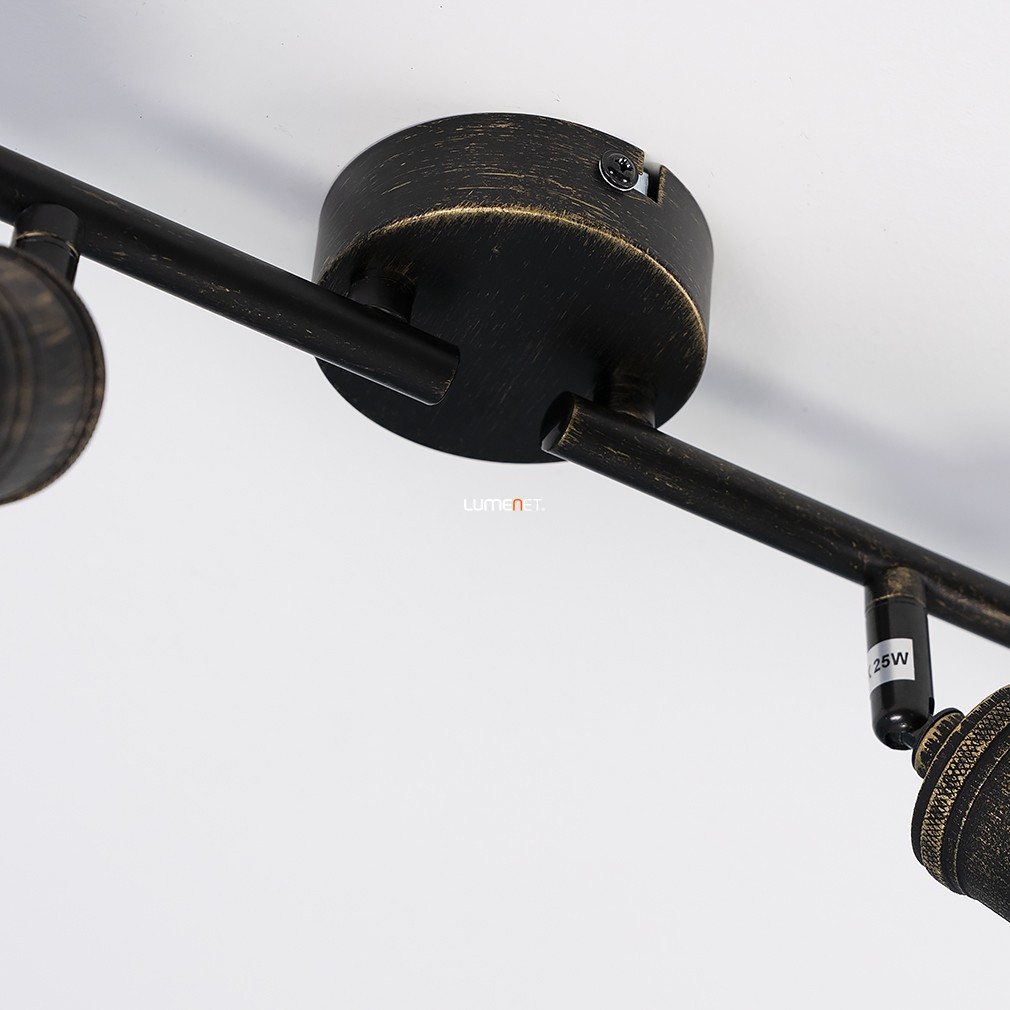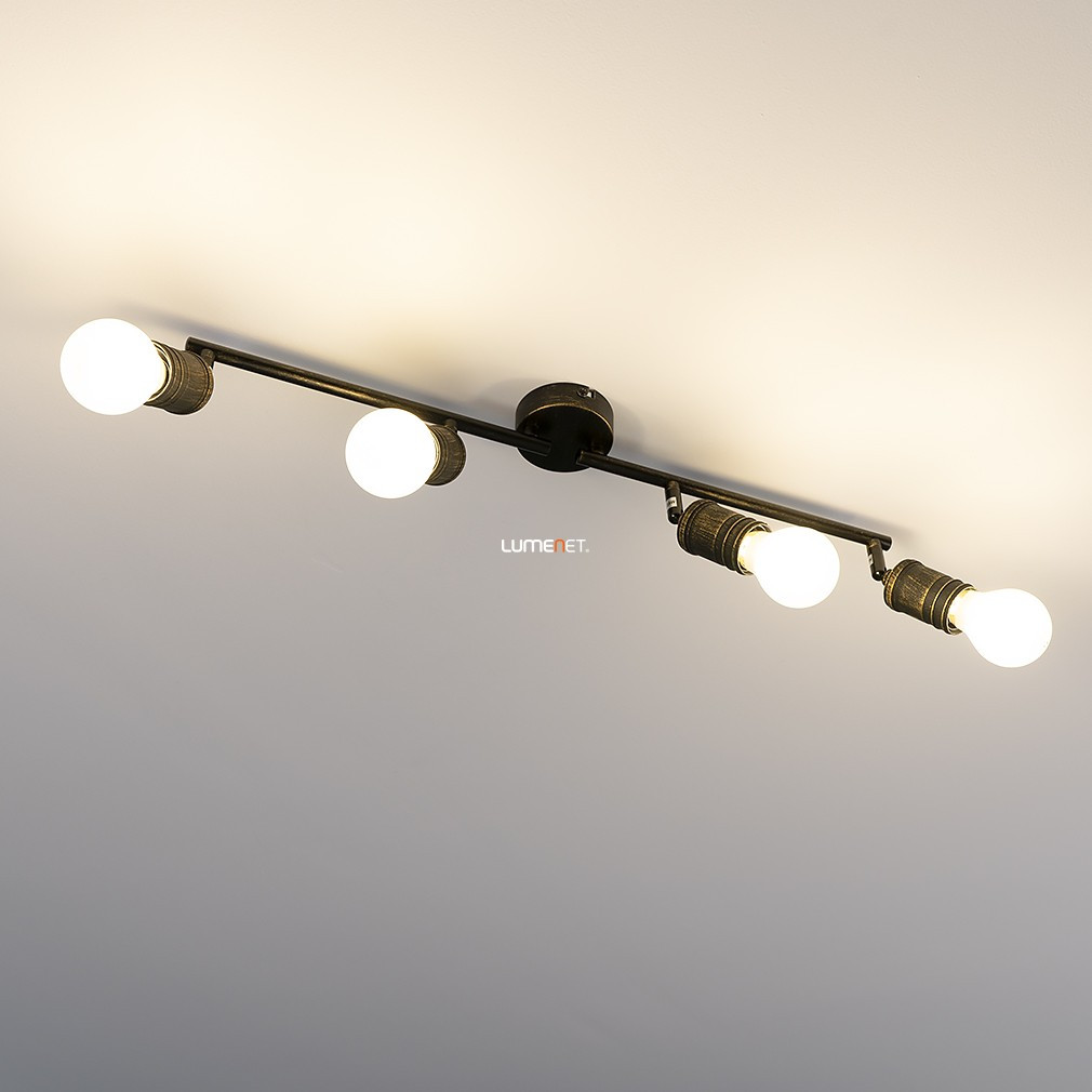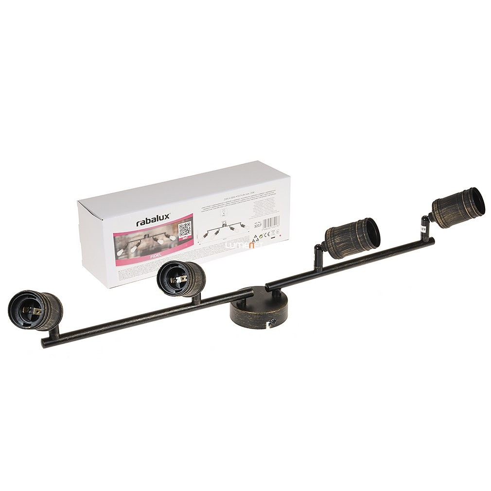 Spotul de tavan Fidel Rábalux 3217 este un corp de iluminat în stil vintage, cu patru socluri E27. Lampa este realizată din metal auriu și antichizat, ceea ce îi asigură durabilitate și un aspect elegant. Corpul de iluminat are o lungime de 740 mm, o lățime de 115 mm și o înălțime de 130 mm. Sursa de lumină este înlocuibilă, astfel încât fluxul luminos, culoarea luminii, puterea și temperatura culorii pot varia în funcție de becul ales. Lampa nu este reglabilă și are protecție IP20, fiind potrivită pentru utilizare în interior. Produsul cântărește 0,69 kg, iar ambalajul măsoară 23x9x11 cm. Producătorul este Rábalux.