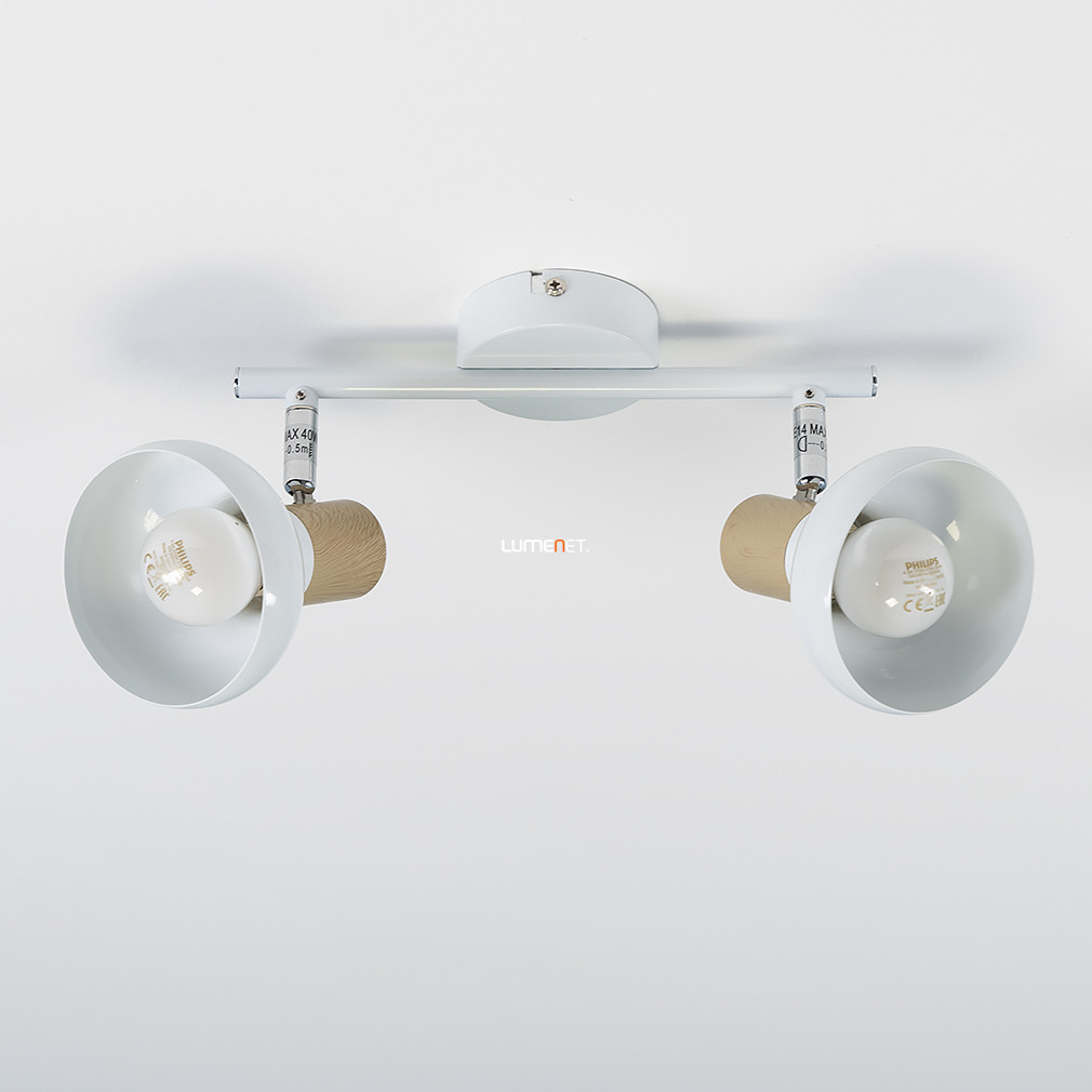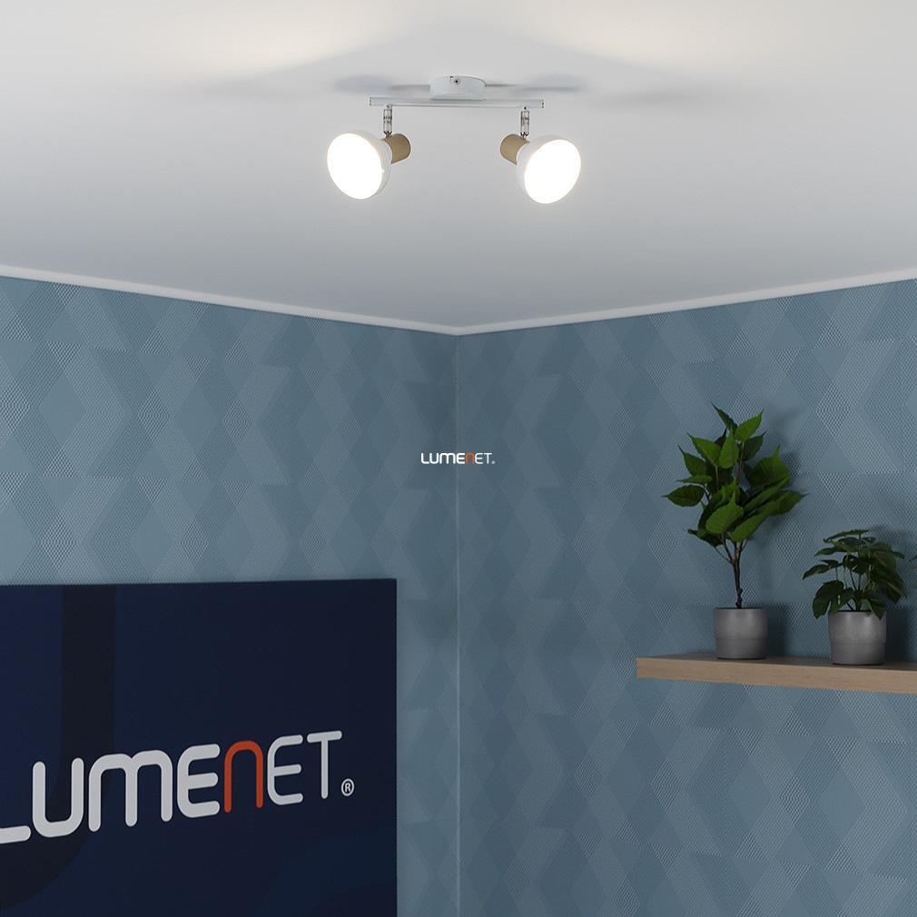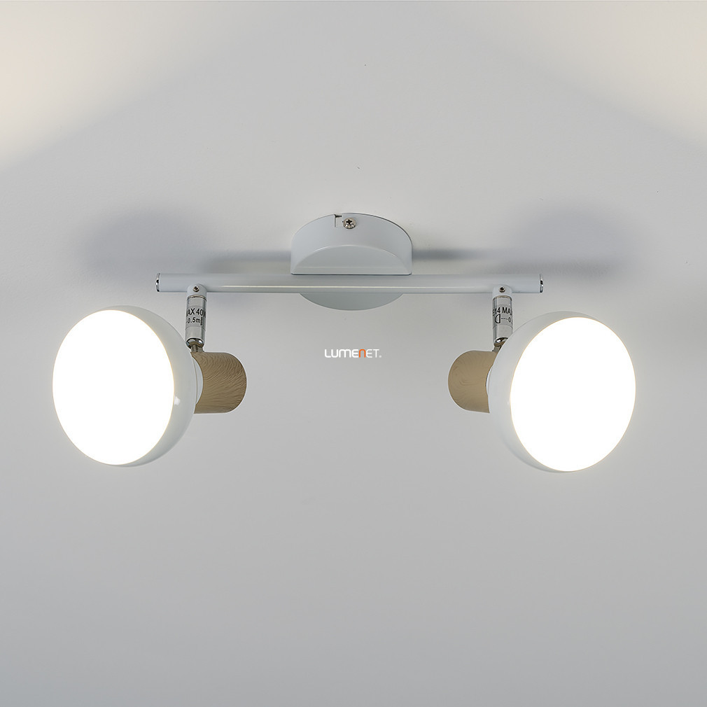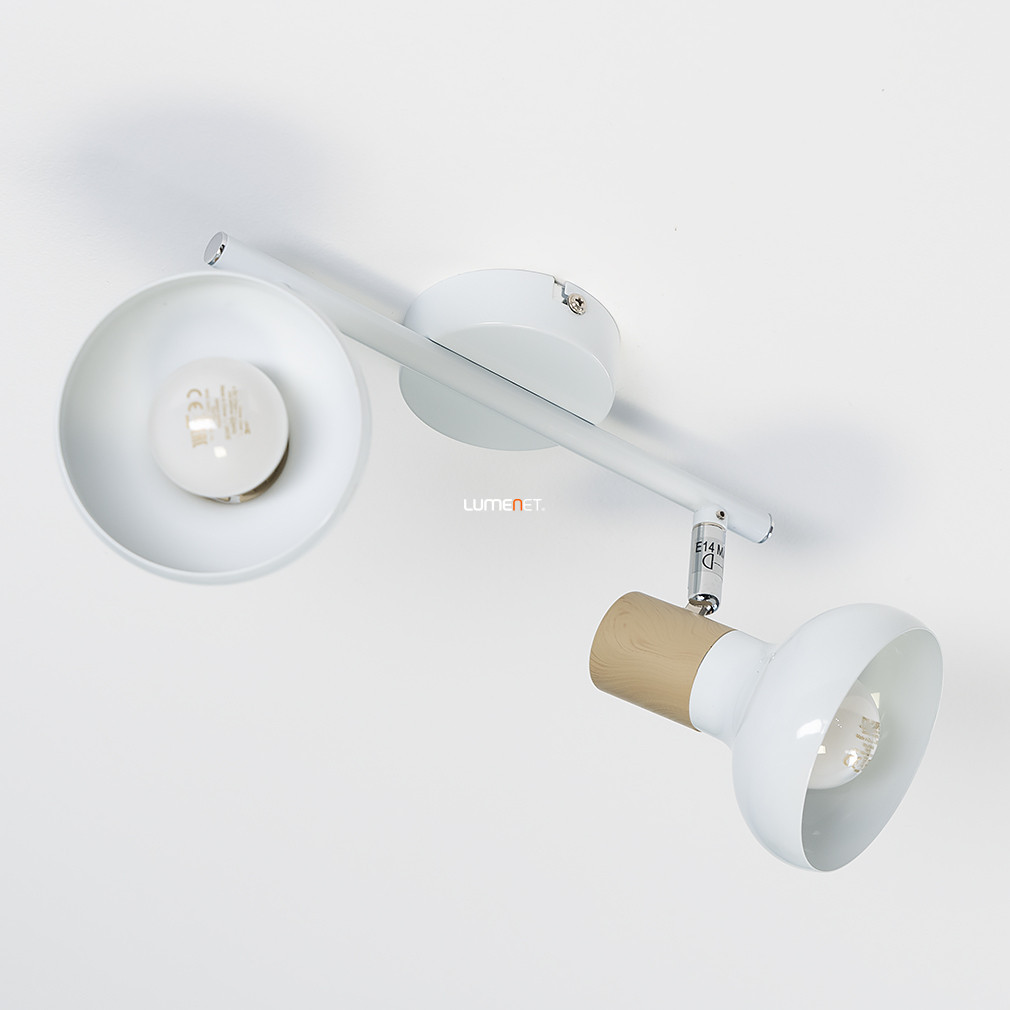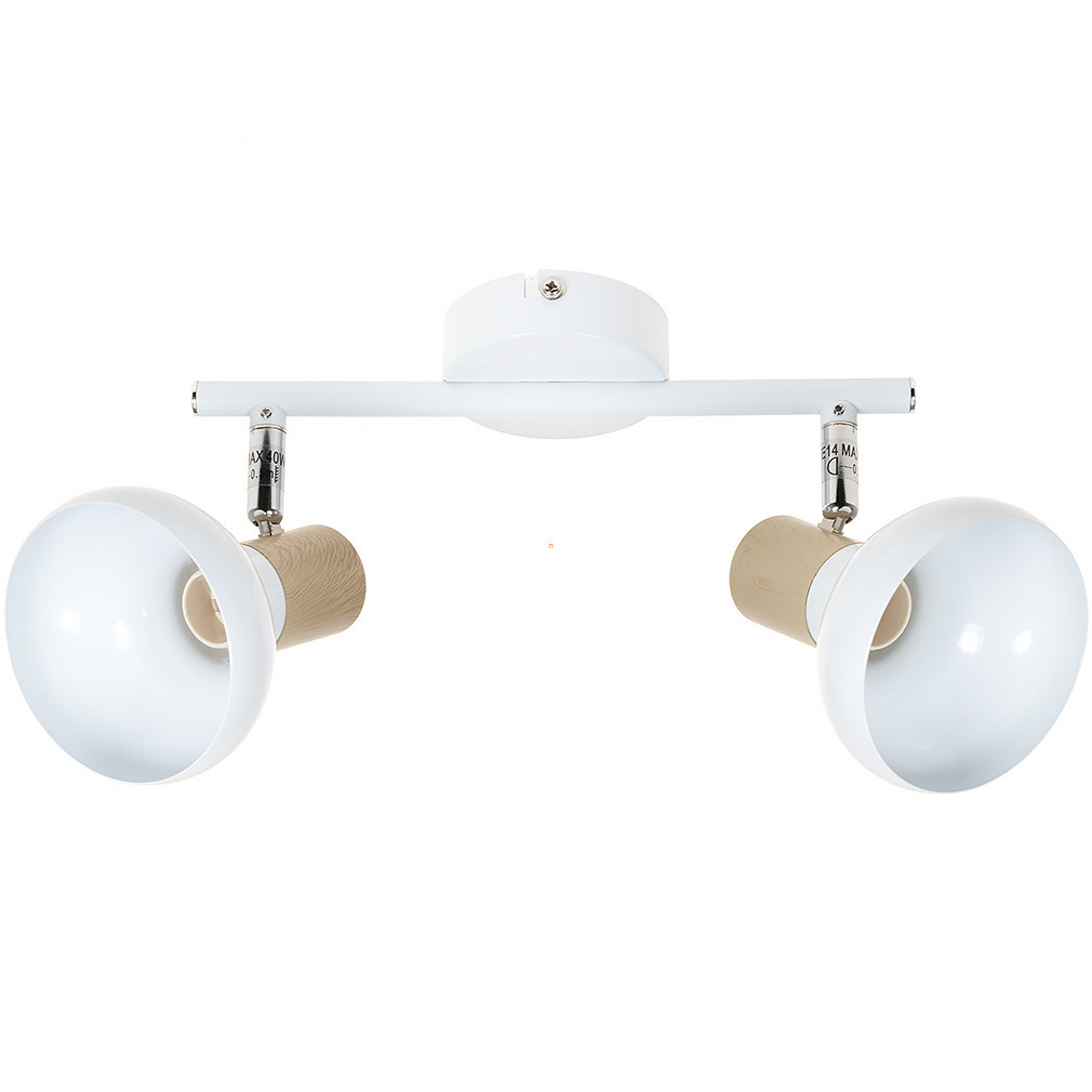 Spotul de tavan Holly Rábalux 5944 este un corp de iluminat în stil modern, cu două socluri E14, care permit utilizarea surselor de lumină înlocuibile. Corp de iluminat este fabricat din metal, într-o combinație de culori alb și lemn, asigurând durabilitate și un aspect estetic. Produsul are protecție IP20, fiind potrivit numai pentru utilizare în interior. Lampa nu include o sursă de lumină, astfel încât fluxul luminos, temperatura culorii și puterea variază în funcție de becul ales. Corp de iluminat are o lățime de 290 mm și o greutate de 0,66 kg. Produsul nu este reglabil, este ușor de instalat și este ideal pentru iluminatul general sau direcționat în diferite camere ale casei.
