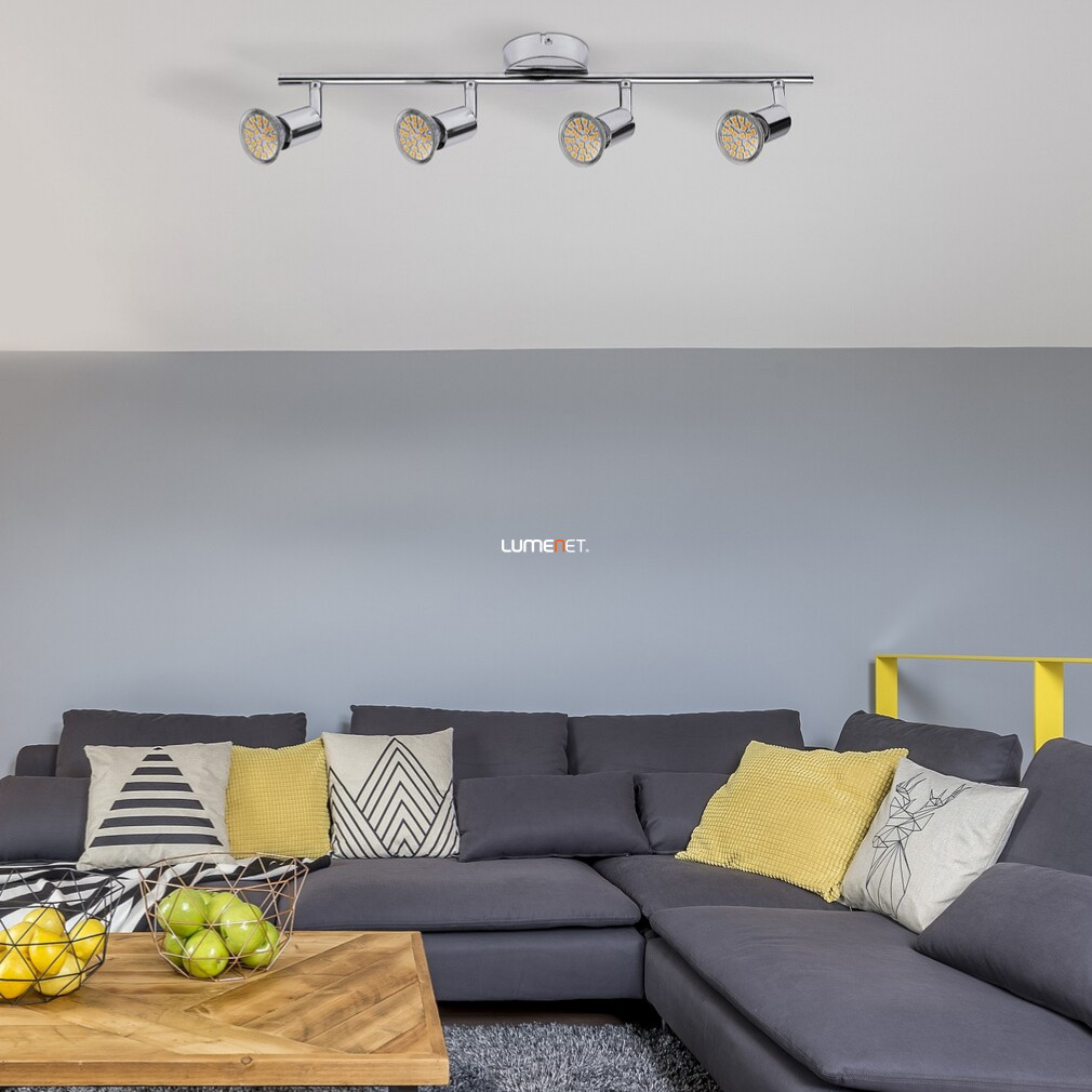 Spotul de tavan Norton Rábalux 6988 conține patru surse de lumină LED alb cald cu socluri GU10, care asigură o iluminare uniformă și plăcută în spațiile de locuit. Corpul de iluminat este fabricat din metal cromat, care conferă încăperii un aspect modern. Produsul are o lungime de 500 mm, o lățime de 80 mm și o înălțime de 130 mm, fiind alegerea ideală pentru iluminatul general în încăperi mici și medii. Lampa are protecție IP20, fiind potrivită pentru utilizare în interior. Sursele de lumină sunt înlocuibile, dar lampa nu este reglabilă. Produsul cântărește 0,85 kg, iar dimensiunile ambalajului sunt 9x8x50 cm. Producătorul este Rábalux.