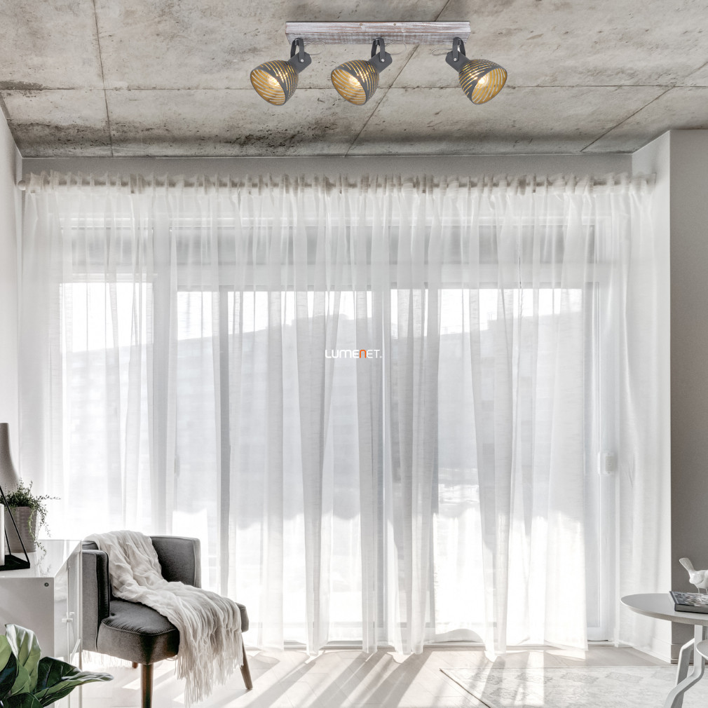 Spotul de tavan Mori Globo 54661-3 are trei socluri E27, care permit utilizarea surselor de lumină înlocuibile, astfel încât luminozitatea, temperatura culorii și puterea să poată fi reglate în funcție de necesități. Corpul de iluminat este realizat dintr-o combinație de materiale metalice și lemnoase, iar schema de culori gri-alb, antic, poate fi utilizată atât în interioare moderne, cât și clasice. Produsul are un grad de protecție IP20 și este potrivit pentru utilizare în interior. Lampa are o lungime de 540 mm, o lățime de 125 mm, o înălțime de 250 mm și o greutate de 1,23 kg. Sursa de lumină nu este inclusă, iar lampa nu este reglabilă. Fabricat de Globo, cod logistic 54661-3.