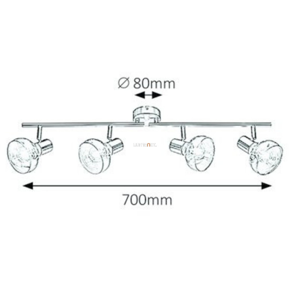 Spotul de tavan Holly Rábalux 5550 are patru socluri E14, care pot fi echipate cu surse de lumină înlocuibile. Corpul de iluminat are un design modern, combinând materiale metalice și sticlă de culoare aurie și chihlimbar. Lățimea totală a lămpii este de 700 mm, iar greutatea acesteia este de 1,2 kg. Produsul are protecție IP20, fiind potrivit pentru utilizare în interior. Sursa de lumină nu este inclusă, iar lampa nu este reglabilă. Dimensiunile ambalajului sunt: 18 cm lățime, 16 cm lungime și 44 cm înălțime. Fabricat de Rábalux.
