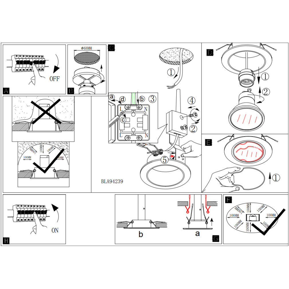 Spot încastrat cu sursă de lumină LED, 5 W, alb, 3 bucăți - Peneto Eglo 94406