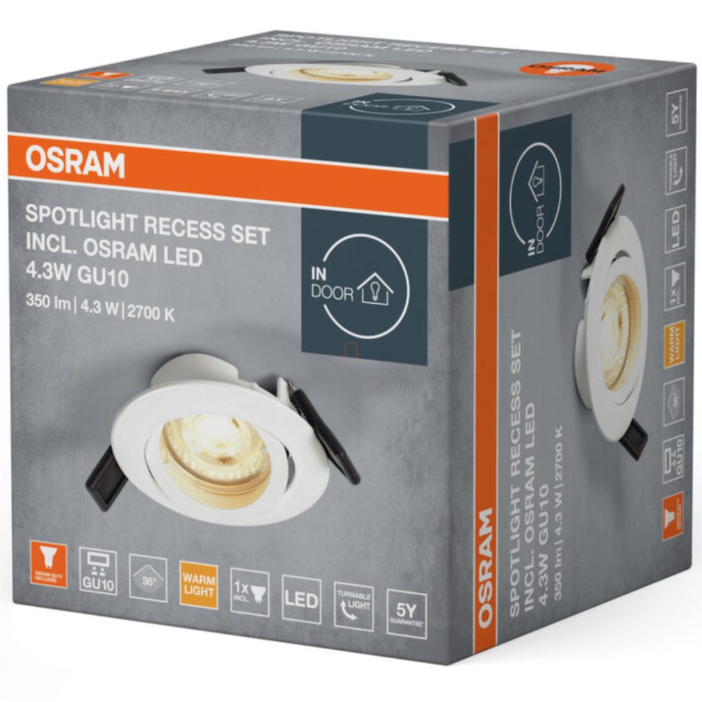 Spot încastrat Osram GU10 2700 Kelvin, alb