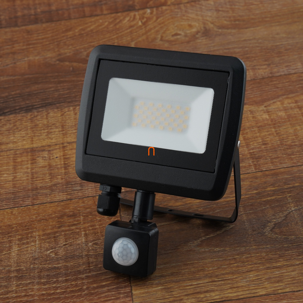 Spot LED 30W cu senzor de mișcare, bloc terminal, balast 4000K 2400lm IP65 120 grade SMD, plat, negru - deLux DEL1745