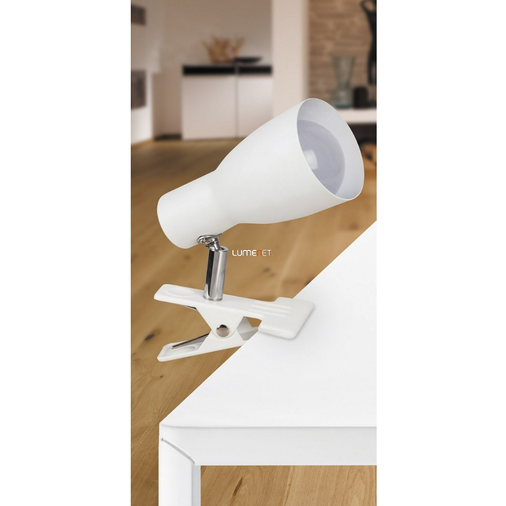 Spotul LED Clip, 14 cm - Ebony Rábalux 6026 este o lampă de masă modernă, de culoare albă, fabricată din oțel și materiale plastice. Lampa are un singur soclu E27, care poate fi echipat cu o sursă de lumină înlocuibilă, astfel încât fluxul luminos, culoarea luminii, puterea și temperatura culorii pot varia în funcție de becul ales. Lampa este controlată de un întrerupător cu cablu, are protecție IP20 și este potrivită pentru utilizare în interior. Dimensiunile sale compacte - 160 mm lungime, 70 mm diametru și 140 mm înălțime - permit amplasarea ușoară pe un birou sau raft. Produsul cântărește 0,45 kg, iar dimensiunile ambalajului sunt 13x7x17 cm. Sursa de lumină nu este inclusă în pachet.