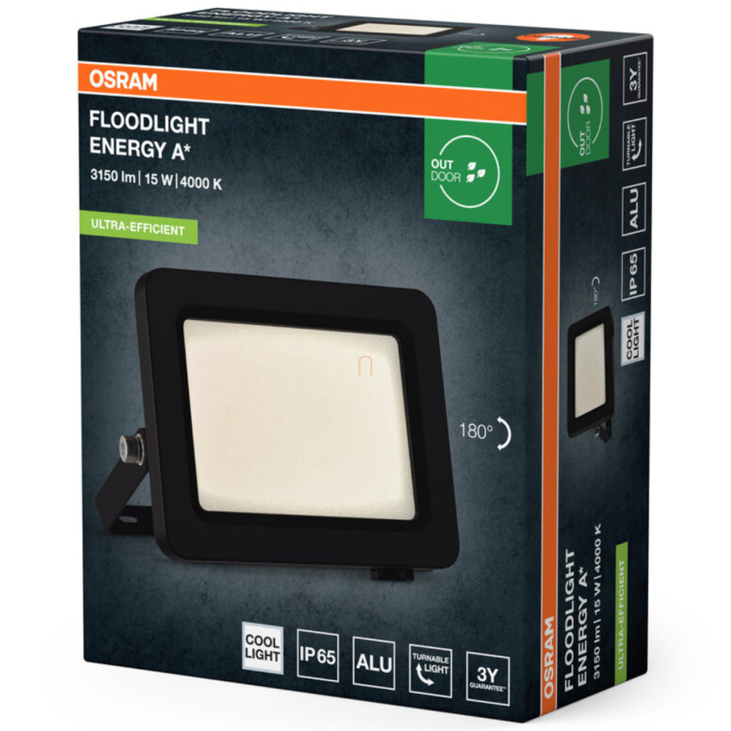 Spot LED exterior pentru montare pe perete, reglabil - Osram Fl Ea 15W 840 Bk, 4000 K, 2600 lm, IP65, 220-240 V