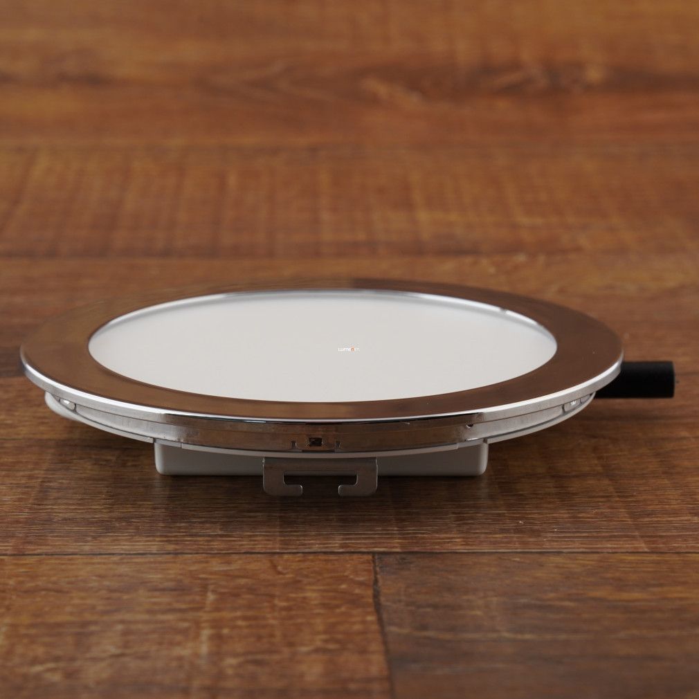 Spotul LED încastrat Fueva Eglo 99205, cu designul său modern și modulul LED încorporat de 10,5 W, oferă o iluminare albă caldă, cu o temperatură de culoare de 3000 K. Puterea luminoasă de 1350 lumeni asigură o iluminare eficientă, iar structura din oțel și plastic, în combinația de culori crom-alb, se integrează estetic în orice interior. Corp de iluminat are un diametru de 166 mm, o dimensiune de decupare de 155 mm și o adâncime de instalare de 26 mm, fiind ideal pentru tavane suspendate și soluții de iluminat încastrate. Clasa de protecție IP44 înseamnă că poate fi utilizat și în locuri umede. Lampa nu este reglabilă, include o sursă de lumină, iar modulul LED asigură o durată lungă de viață. Produsul cântărește 0,34 kg și are dimensiuni de ambalare de 17x17x3 cm.