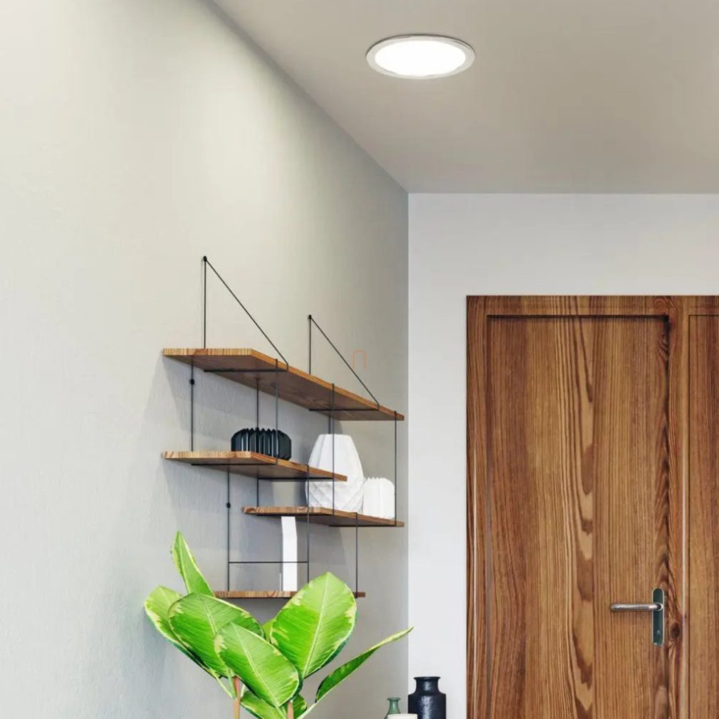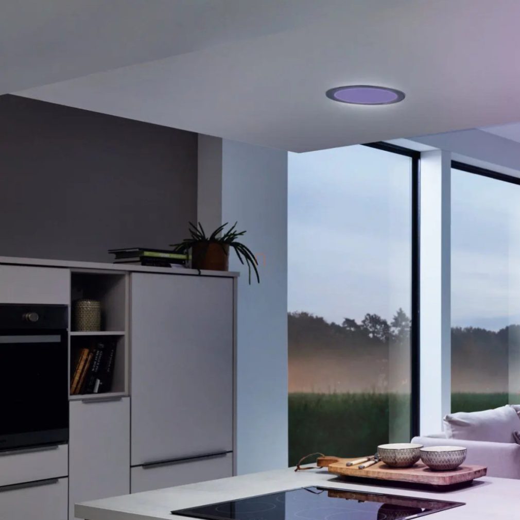 Spotul LED încastrabil reglabil Fueva Eglo 98844 are un modul LED încorporat de 16,5 W care oferă un flux luminos de 2100 lumeni. Temperatura culorii lămpii poate fi reglată între 2700 și 6500 Kelvin, permițându-vă să setați atât lumina albă rece, cât și cea caldă, fie prin intermediul aplicației, fie printr-o telecomandă disponibilă separat. Produsul este conceput pentru a fi încastrat în tavane suspendate și este fabricat din aluminiu și plastic în culori nichel și alb. Corpul de iluminat are un grad de protecție IP20/IP44, un diametru de 216 mm și o greutate de 0,52 kg. Dimensiunile ambalajului sunt 22x22x3 cm. Producătorul este EGLO.