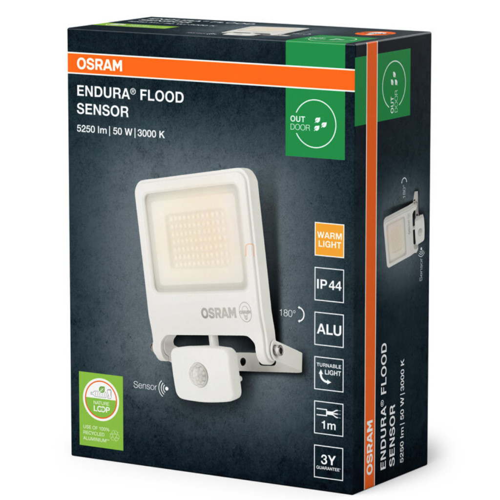 Spot LED Osram cu senzor de mișcare, alb cald, 50 W, alb (Endura Flood)