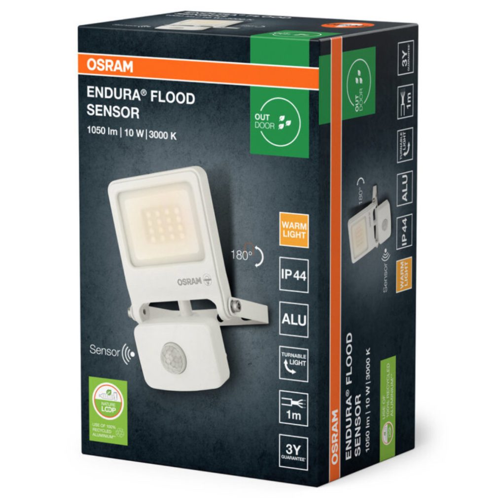 Spot LED Osram Endura Flood cu senzor de mișcare 10 W, 800 lm, 3000 K, IP44, alb
