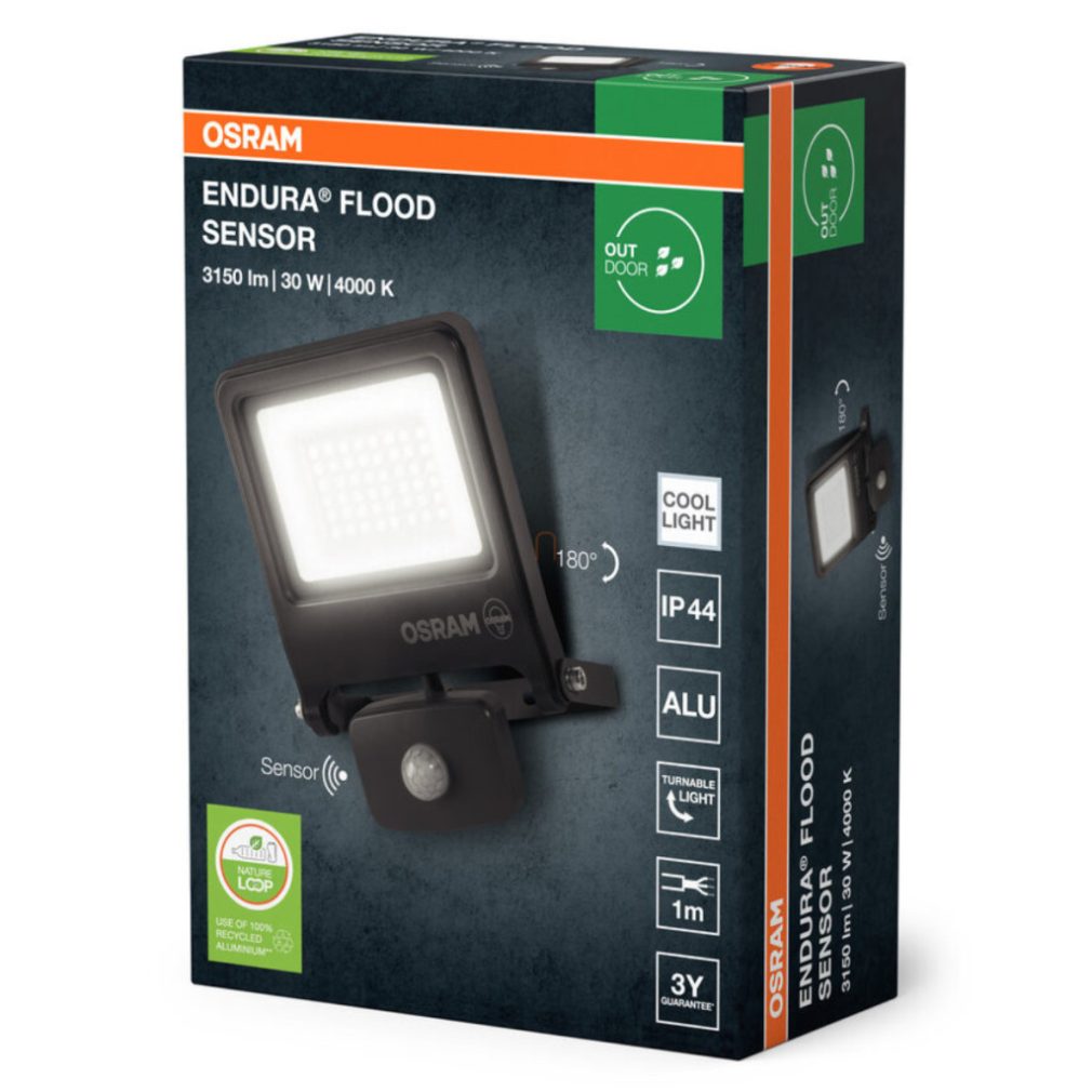 Spot LED Osram Endura Flood cu senzor de mișcare 30 W, 4000 K, 2700 lm, IP44, gri