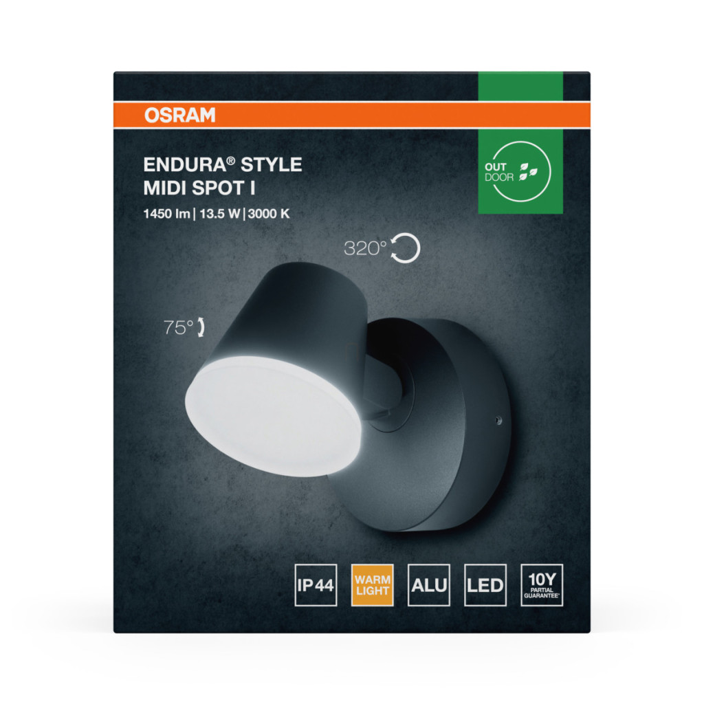 Spot LED Osram Endura Style Midi Spot pentru exterior, montat pe perete, alb cald, 13 W
