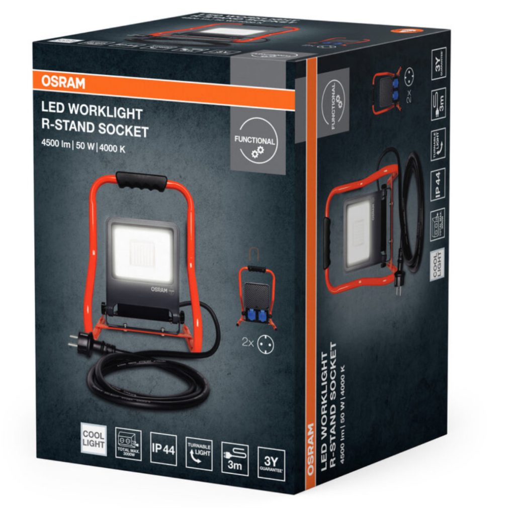 Spot LED Osram pentru exterior cu soclu dublu, alb rece, 50 W (Worklight R-Stand)