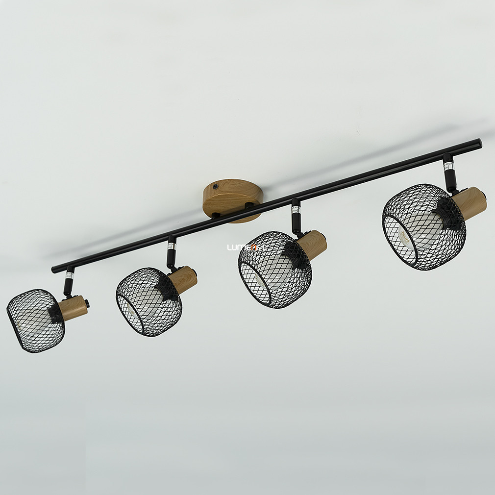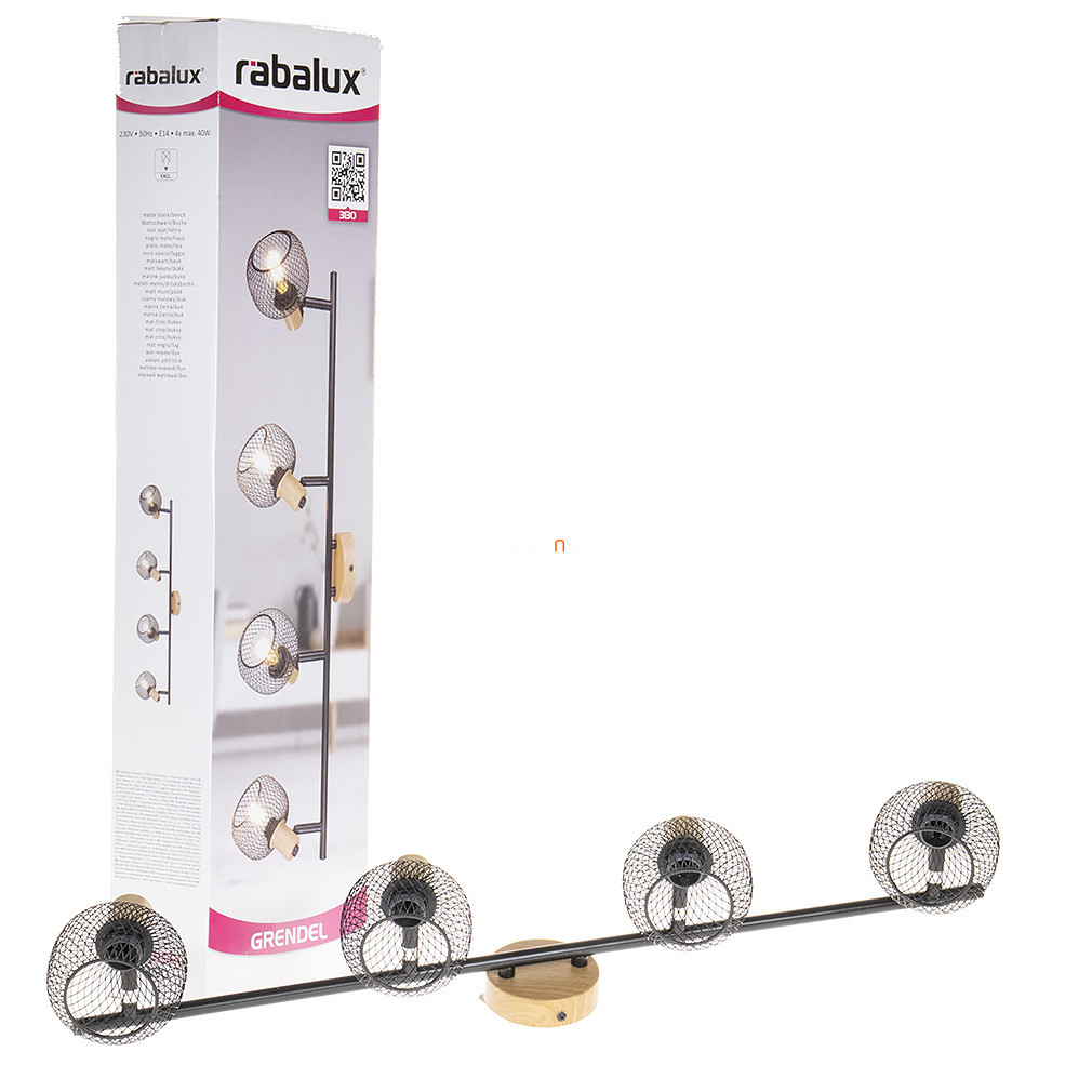 Spotul cu plasă metalică Grendel Rábalux 3130 are patru socluri E14 care pot fi echipate cu surse de lumină înlocuibile. Cadrul lămpii este realizat din metal negru și elemente din lemn, conferindu-i un aspect vintage. Produsul are protecție IP20, fiind potrivit pentru utilizare în interior. Lungimea totală a lămpii este de 755 mm, lățimea este de 145 mm, înălțimea este de 175 mm, iar greutatea este de 0,88 kg. Spotul nu include o sursă de lumină și nu este reglabil. Ambalajul are o lățime de 77 mm, o lungime de 180 mm și o înălțime de 110 mm. Producătorul este Rábalux.