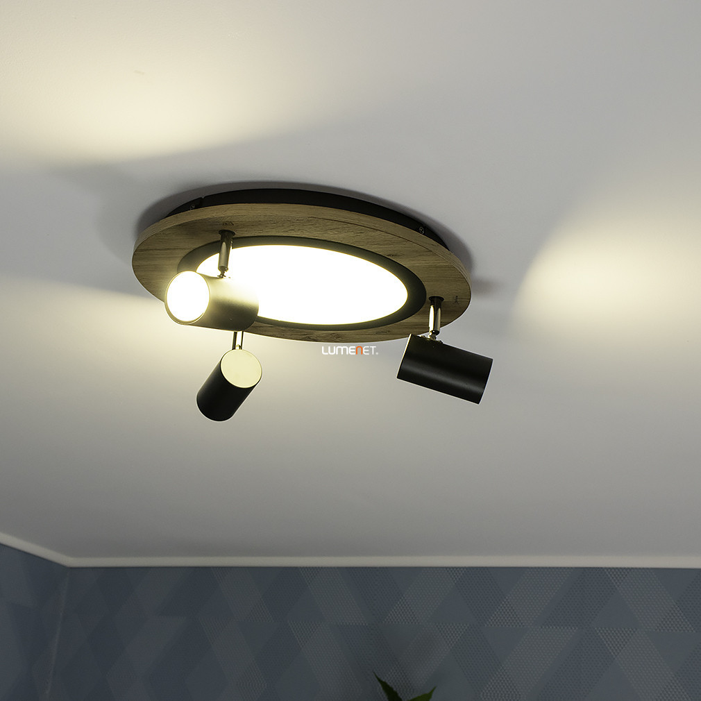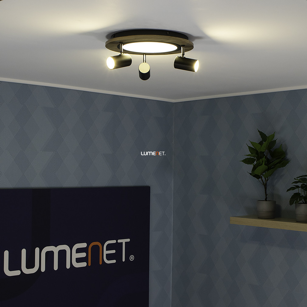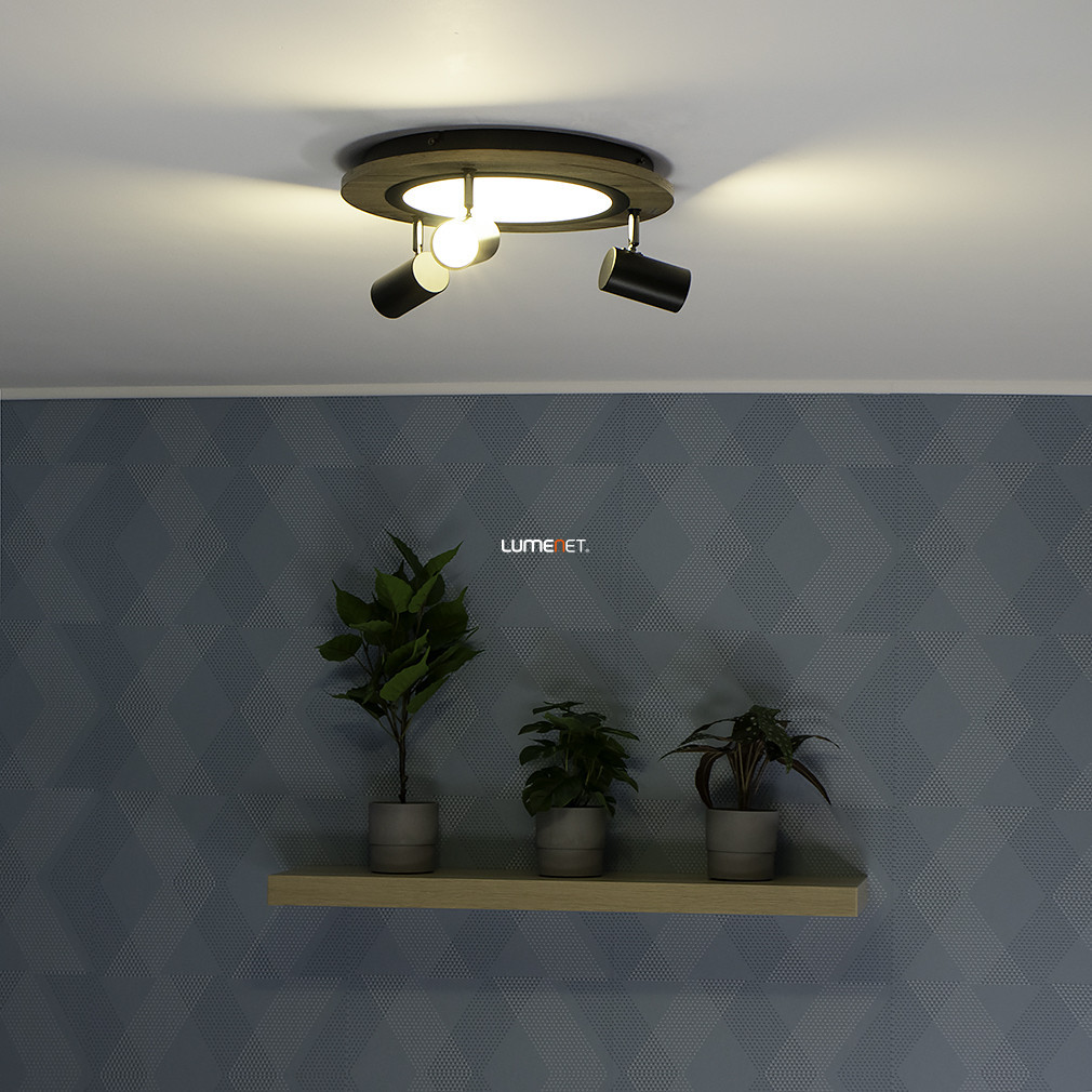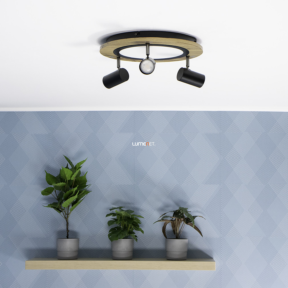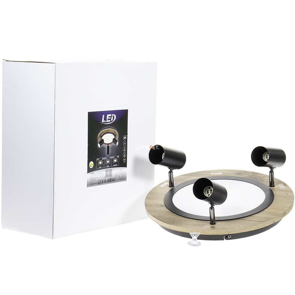 Spotul Kassu Globo 67307D cu comutator montat pe perete are trei surse de lumină LED cu socluri GU10 și o putere totală de 15 W. Corpul de iluminat oferă lumină albă caldă, iar temperatura culorii poate fi reglată cu surse de lumină înlocuibile. Produsul este fabricat din metal și plastic într-o combinație de culori negru și lemn, cu un aspect modern. Lampa are trei funcții, o funcție de memorie și un comutator de perete pentru controlul luminozității. Corpul de iluminat are un diametru de 400 mm, o înălțime de 180 mm și un grad de protecție IP20, fiind potrivit pentru utilizare în interior. Pachetul include sursele de lumină, iar produsul cântărește 2,55 kg. Dimensiunile ambalajului sunt: 18 cm lățime, 45 cm lungime și 45 cm înălțime. Lampa este fabricată de Globo, iar codul său logistic este 67307D.