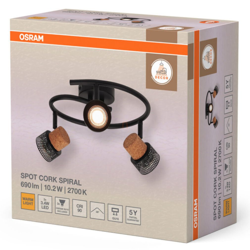 Spot Osram din plută cu 3 socluri, spiralat (Decor Spot Cork)