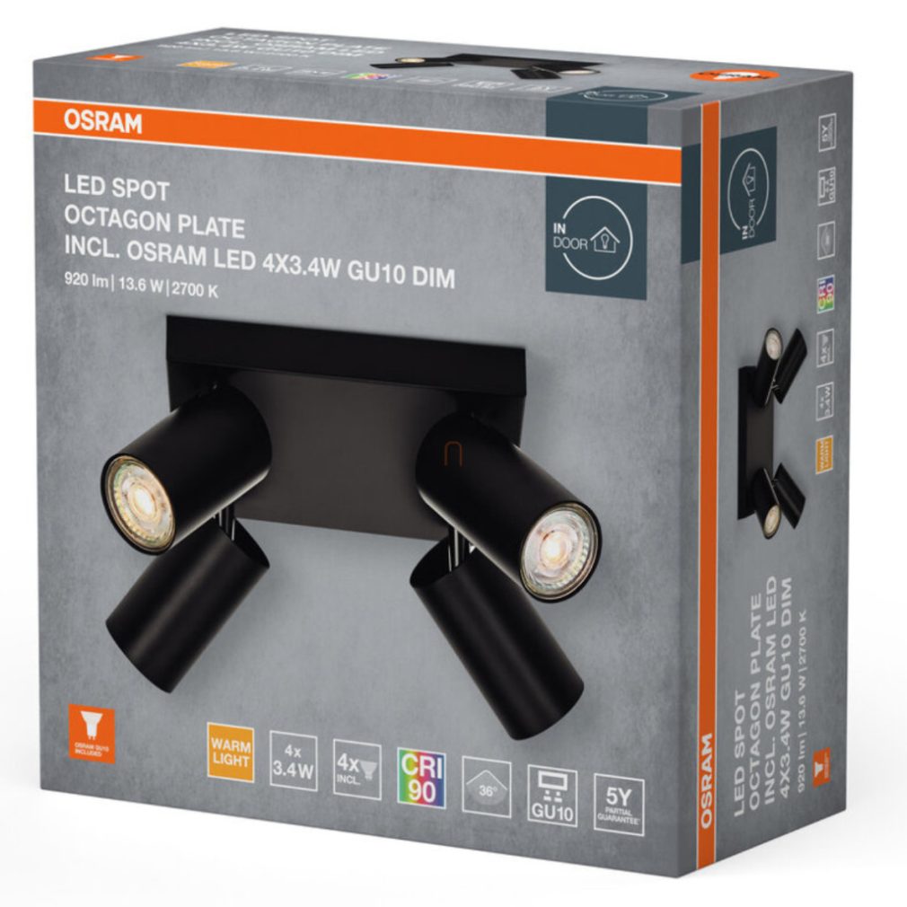 Spot Osram negru cu 4 socluri (Octagon)