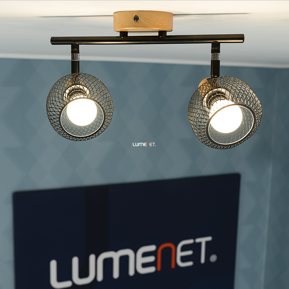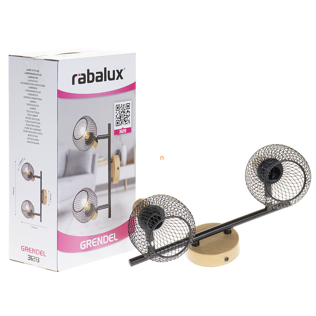 Spotul de tavan din plasă metalică Grendel Rábalux 3128 este proiectat în stil vintage și are două socluri E14, permițând utilizarea surselor de lumină înlocuibile. Materialele principale ale corpului de iluminat sunt metalul și lemnul, iar schema de culori este o combinație de lemn și negru. Produsul are protecție IP20, fiind potrivit pentru utilizare în interior. Dimensiunile totale ale lămpii sunt 320 mm lungime, 145 mm lățime și 170 mm înălțime, cu o greutate de 0,55 kg. Corpul de iluminat nu include o sursă de lumină; fluxul luminos, culoarea luminii, puterea și temperatura culorii pot varia în funcție de becul utilizat. Lampa nu este reglabilă, iar ambalajul măsoară 18 x 11 x 33 cm. Grendel Rábalux 3128 este alegerea ideală dacă sunteți în căutarea unui corp de iluminat distinctiv, vintage, pentru tavan, cu o combinație de lemn și metal.