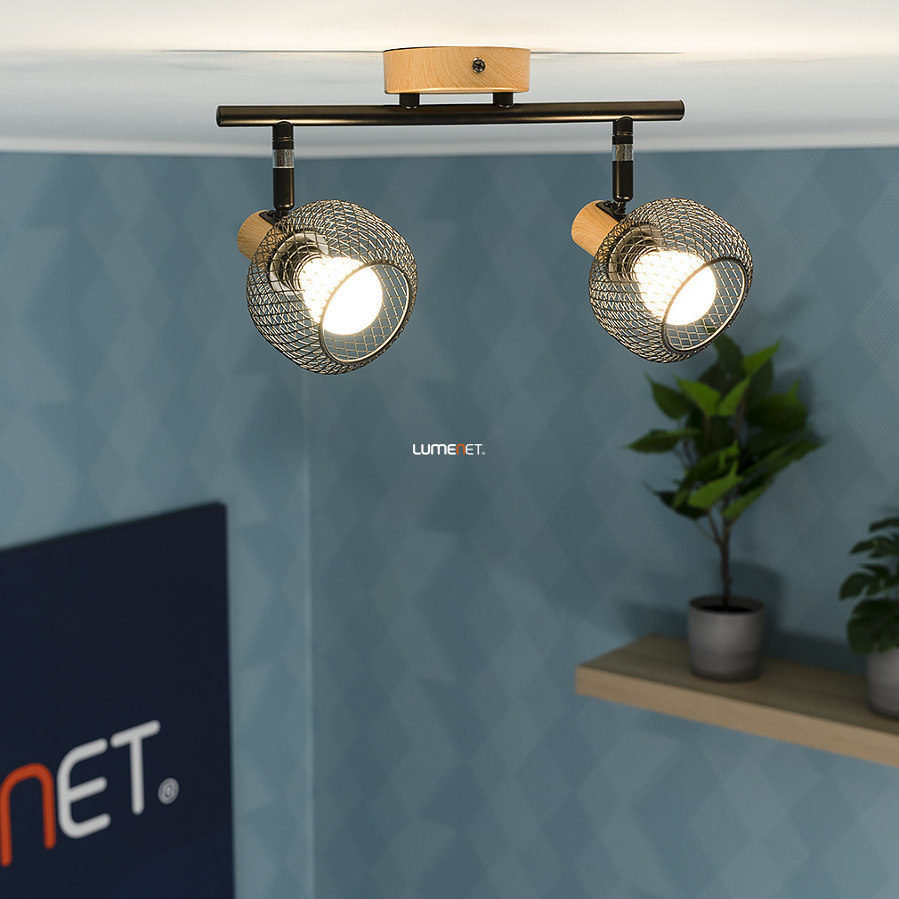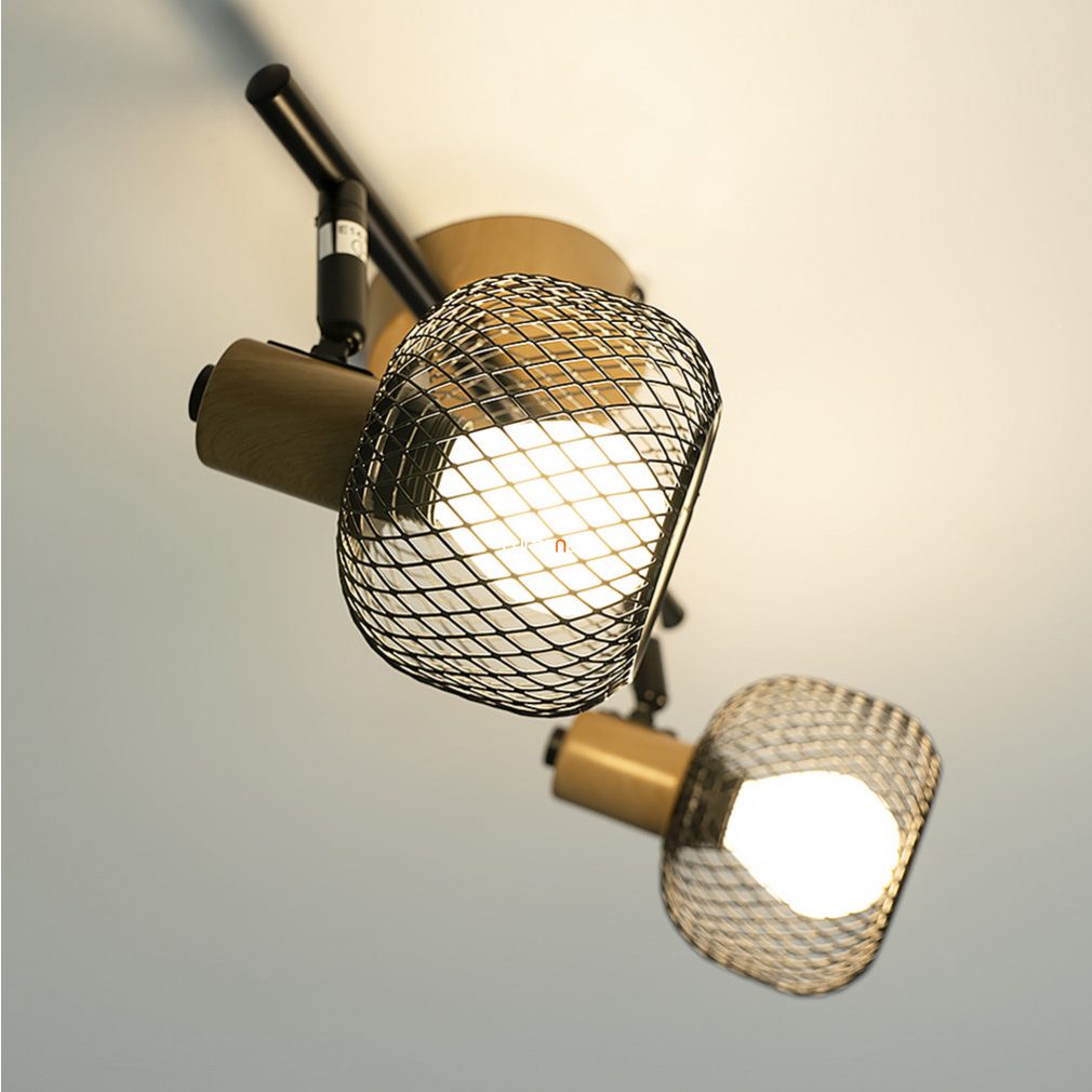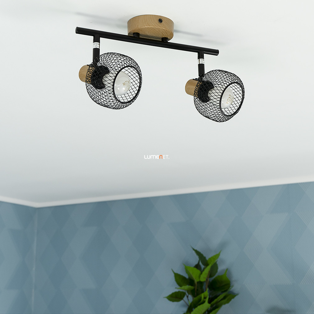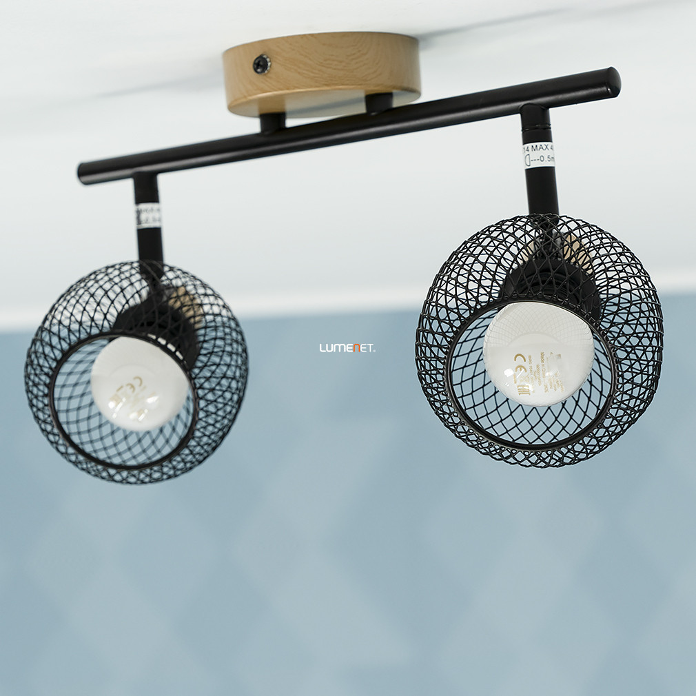 , care se potrivește perfect într-o varietate de interioare. Designul lămpii evocă stilul vintage, combinând materiale metalice și din lemn pentru a-i conferi un aspect unic. Combinația armonioasă dintre abajurul din plasă metalică neagră și elementele din lemn creează o atmosferă specială în casa ta. Această lampă de tavan are două socluri E14, care permit utilizarea surselor de lumină înlocuibile. Astfel, puteți alege liber dintre becuri cu diferite intensități luminoase și temperaturi de culoare pentru a obține iluminatul care se potrivește cel mai bine atmosferei și funcției camerei. Lampa nu include surse de lumină, deci merită să achiziționați separat becuri LED E14 adecvate. Lampa are un grad de protecție IP20, ceea ce înseamnă că este