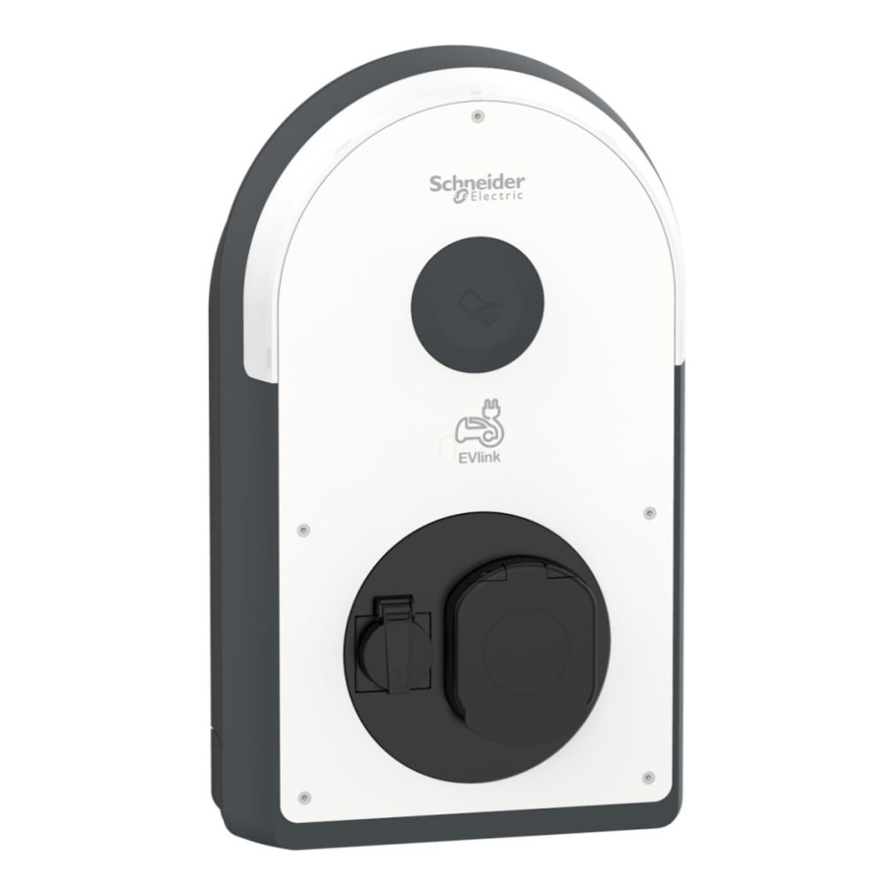 Stație de încărcare pentru mașini electrice Schneider Electric EVlink Pro AC EVB3S07N4E1 1*32 Amperi - 7,4 kW - T2S + protecție RDC-DD 6 mA + priză TE