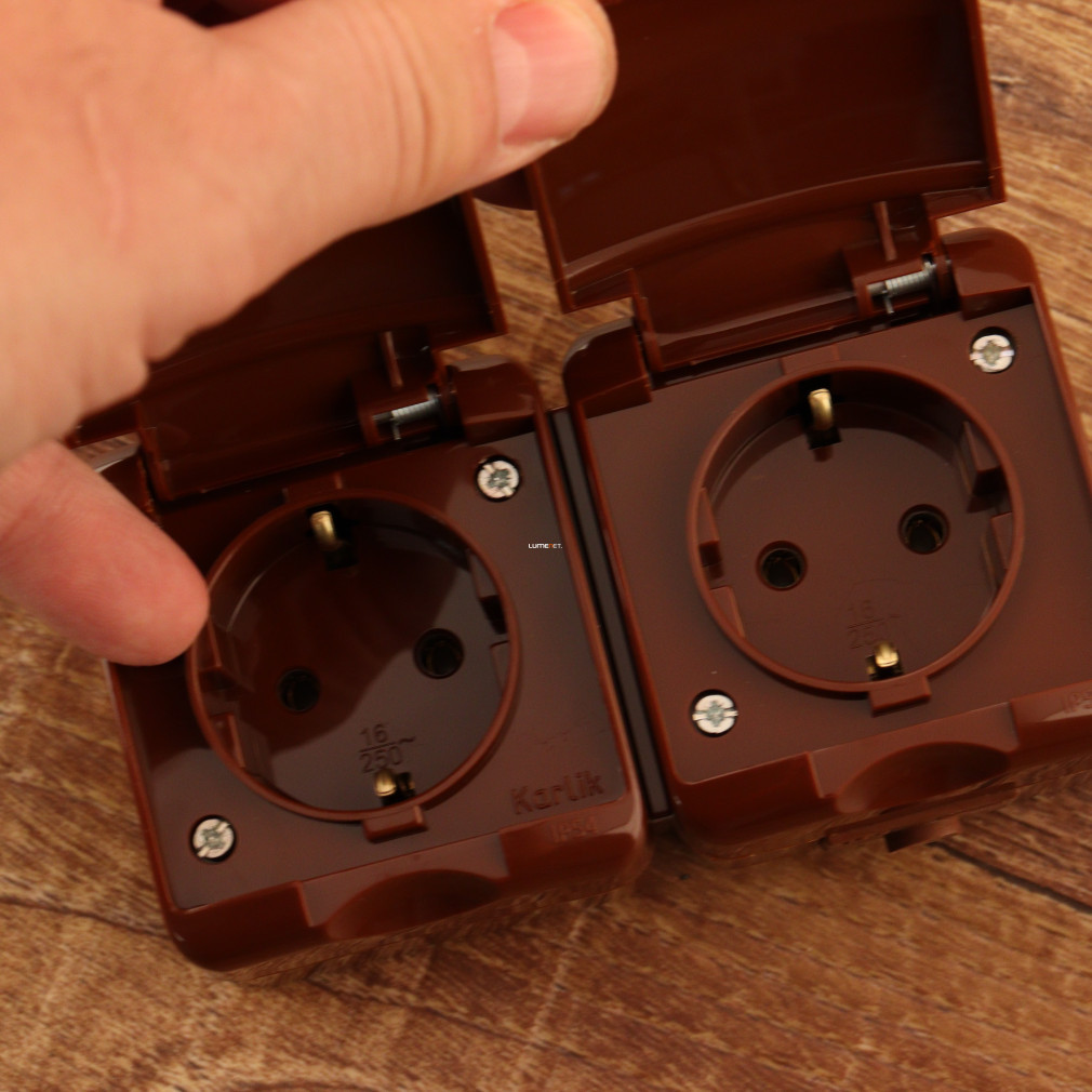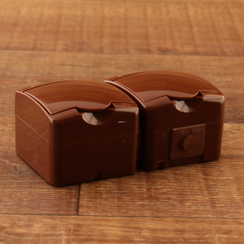 Ștecher cu dublă împământare, capac pentru robinet, maro