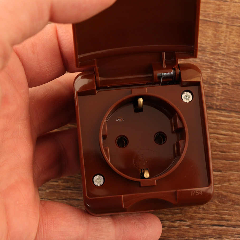 Ștecher cu împământare, capac pentru robinet, maro