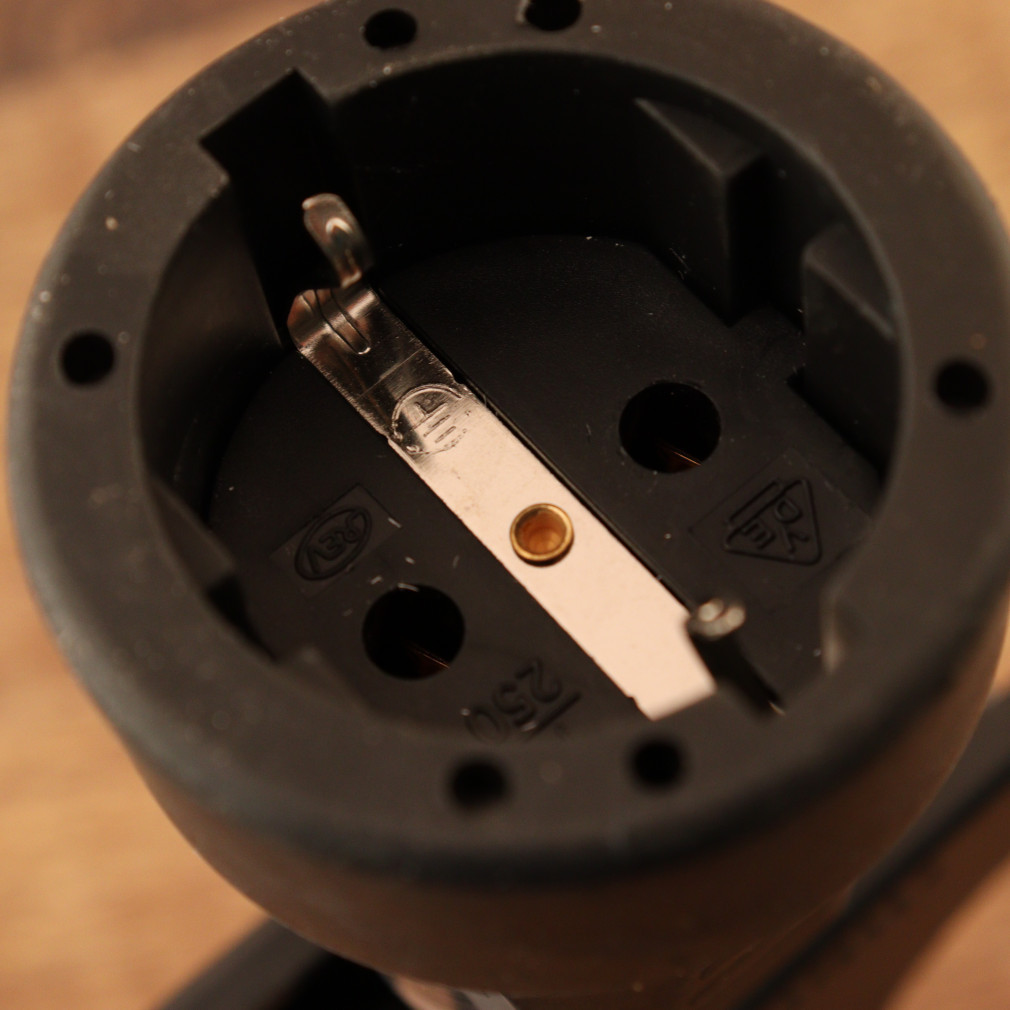 GAO Priză de împământare 230V 16A negru 12151 are un capac de cauciuc pentru a rezista mai bine șocurilor mecanice din utilizarea zilnică, iar fixarea cu șurub a inserției și a firului asigură o instalare ușoară.
